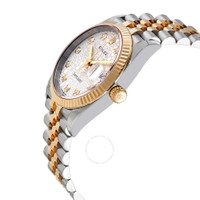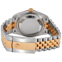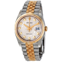 Stainless steel and 18kt yellow gold case with a two-tone (silver-tone and gold-tone) stainless steel and 18kt yellow gold rolex jubilee bracelet. Fixed fluted 18kt yellow gold bezel. Silver jubilee dial with yellow gold hands and diamonds hour markers. Dial Type: Analog. Date display at the 3 o'clock position. Rolex Calibre 3235 automatic movement with a 70-hour power reserve. Scratch resistant sapphire crystal. Screw down crown. Solid case back. Round case shape. Case size: 36 mm. Oyster clasp. Water resistant at 100 meters / 330 feet. Functions: date, hour, minute, second, chronometer. Luxury watch style. Watch label: Swiss Made. Rolex Datejust 36 Silver Jubilee Diamond Dial Men's Steel and 18kt Yellow Gold Jubilee Watch 126233SJDJ. CASE Case Size: 36 Case Material: Stainless Steel and 18kt Yellow Gold Case Shape: Round Case Back: Solid BAND Band Material: Stainless Steel and 18kt Yellow Gold Rolex Jubilee Band Type: Bracelet Band Color: Two-tone (Silver-tone and Gold-tone) Clasp: Oysterclasp DIAL Dial Color: Silver Jubilee Type: Analog Crystal: Scratch Resistant Sapphire Hands: Yellow Gold Dial Markers: Diamonds Bezel: Fixed Fluted Bezel Material: 18kt Yellow Gold Crown: Screw Down INFORMATION Brand: Rolex Series: Datejust Collection Name: Datejust Gender: Mens Model: 126233SJDJ Watch Label: Swiss Made Movement: Automatic Engine: Rolex Calibre 3235 Power Reserve: 70 hours FEATURES Water Resistance: 100 meters / 330 feet Calendar: Date display at the 3 o'clock position Functions: Date, Hour, Minute, Second, Chronometer Watch Features: Diamond, Stainless Steel, Gold, Chronometer, Analog ADDITIONAL INFO Watch Style: Luxury Warranty: 2 Year Jomashop Warranty Jomashop Sku: RLX126233SJDJ Department: Watches Category: Watches