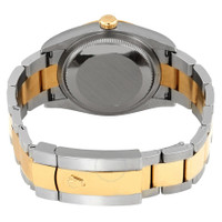 Stainless steel and 18k yellow gold case with a stainless steel and 18k yellow gold rolex oyster bracelet. Fixed bezel. White dial with yellow gold hands and index hour markers. Dial Type: Analog. Date display at the 3 o'clock position. Rolex Calibre 3235 automatic movement with a 70-hour power reserve. Scratch resistant sapphire crystal. Screw down crown. Solid case back. Round case shape. Case size: 36 mm. Water resistant at 100 meters / 330 feet. Functions: date, hour, minute, second. Luxury watch style. Watch label: Swiss Made. Rolex Datejust 36 White Dial Automatic Men's Steel and 18k Yellow Gold Oyster Watch 126203WSO. CASE Case Size: 36 Case Material: Stainless Steel and 18kt Yellow Gold Case Shape: Round Case Back: Solid BAND Band Material: Stainless Steel and 18k Yellow Gold Rolex Oyster Band Type: Bracelet Band Color: Two-tone (Silver-tone and Gold-tone) DIAL Dial Color: White Type: Analog Crystal: Scratch Resistant Sapphire Hands: Yellow Gold Dial Markers: Index Bezel: Fixed Bezel Material: 18kt Yellow Gold Crown: Screw Down INFORMATION Brand: Rolex Series: Datejust Collection Name: Datejust Gender: Mens Model: M126203-0020 Watch Label: Swiss Made Movement: Automatic Engine: Rolex Calibre 3235 Power Reserve: 70 hours FEATURES Water Resistance: 100 meters / 330 feet Calendar: Date display at the 3 o'clock position Functions: Date, Hour, Minute, Second Watch Features: Stainless Steel, Gold, Analog ADDITIONAL INFO Watch Style: Luxury Warranty: 2 Year Jomashop Warranty Jomashop Sku: RLX126203WSO Item Variation: 126203WSO,126203-0020 Department: Watches Category: Watches