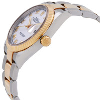 Stainless steel and 18kt yellow gold case with a stainless steel and 18kt yellow gold rolex oyster bracelet. Fixed, fluted bezel. White dial with yellow gold hands and Roman numeral hour markers. Dial Type: Analog. Date display at the 3 o'clock position. Rolex Calibre 3235 automatic movement with a 70-hour power reserve. Scratch resistant sapphire crystal. Screw down crown. Solid case back. Round case shape. Case size: 36 mm. Water resistant at 100 meters / 330 feet. Functions: date, hour, minute, second. Luxury watch style. Watch label: Swiss Made. Rolex Datejust 36 White Dial Men's Stainless Steel and 18kt Yellow Gold Oyster Watch 126233WRO. GENERAL Box Type: Original Box CASE Case Diameter: 36 mm Case Material: Stainless Steel and 18kt Yellow Gold Case Shape: Round Case Back: Solid BAND Band Material: Stainless Steel and 18kt Yellow Gold Rolex Oyster Band Type: Bracelet Band Color: Two-tone (Silver-tone and Gold-tone) DIAL Dial Color: White Type: Analog Crystal: Scratch Resistant Sapphire Hands: Yellow Gold Dial Markers: Roman Numeral Bezel: Fixed Fluted Bezel Material: 18kt Yellow Gold Crown: Screw Down INFORMATION Brand: Rolex Series: Datejust Collection Name: Datejust Gender: Mens Model: M126233-0030 Watch Label: Swiss Made Movement: Automatic Engine: Rolex Calibre 3235 Power Reserve: 70 hours FEATURES Water Resistance: 100 meters / 330 feet Calendar: Date display at the 3 o'clock position Functions: Date, Hour, Minute, Second Watch Features: Analog, Gold, Stainless Steel ADDITIONAL INFO Watch Style: Luxury Warranty: 2 Year Jomashop Warranty Jomashop Sku: RLX126233WRO Item Variation: 126233WRO,126233-0030 Department: Watches Category: Watches