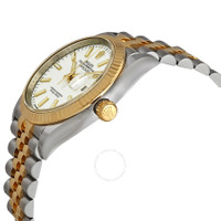 Stainless steel case with a stainless steel Rolex jubilee bracelet with 18kt yellow gold center links. Fixed fluted 18kt yellow gold bezel. White dial with luminous yellow gold hands and index hour markers. Minute markers around the outer rim. Dial Type: Analog. Luminescent hands and markers. Date display at the 3 o'clock position. Rolex calibre 3235 automatic movement, based upon Rolex 3035, containing 31 Jewels, bitting at 28800 vph, and has a power reserve of approximately 70 hours. Scratch resistant sapphire crystal. Screw down crown. Solid case back. Round case shape. Case size: 36 mm. Oyster clasp. Water resistant at 100 meters / 330 feet. Functions: date, hour, minute, second. Datejust 36 Series. Luxury watch style. Watch label: Swiss Made. Rolex Datejust 36 White Dial Men's Steel and 18kt Yellow Gold Jubilee 126233WSJ. CASE Case Size: 36 Case Material: Stainless Steel Case Shape: Round Case Back: Solid BAND Band Material: Stainless Steel and 18kt Yellow Gold Rolex Jubilee Band Type: Bracelet Band Color: Two-tone (Silver-tone and Gold-tone) Clasp: Oyster DIAL Dial Color: White Type: Analog Crystal: Scratch Resistant Sapphire Hands: Luminous Yellow Gold Dial Markers: Index Second Markers: Minute Markers around the outer rim Luminiscence: Hands and Markers Bezel: Fixed Fluted Bezel Material: 18kt Yellow Gold Crown: Screw Down INFORMATION Brand: Rolex Series: Datejust Collection Name: Datejust Gender: Mens Model: M126233-0019 Watch Label: Swiss Made Movement: Automatic Engine: Rolex Calibre 3235 Power Reserve: 70 hours FEATURES Water Resistance: 100 meters / 330 feet Calendar: Date display at the 3 o'clock position Functions: Date, Hour, Minute, Second Watch Features: Stainless Steel, Gold, Analog ADDITIONAL INFO Watch Style: Luxury Warranty: 2 Year Jomashop Warranty Jomashop Sku: RLX126233WSJ Item Variation: 126233WSJ,126233-0019 Department: Watches Category: Watches