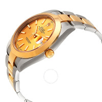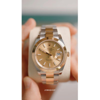 Stainless steel case with a stainless steel Rolex oyster bracelet with 18kt yellow gold center links. Fixed 18kt yellow gold bezel. Champagne dial with luminous yellow gold-tone hands and index hour markers. Arabic numeral minute markers (at 5 minute intervals). Minute markers around the outer rim. Dial Type: Analog. Luminescent hands and markers. Date display at the 3 o'clock position. Rolex calibre 3235 automatic movement, based upon Rolex 3035, containing 31 Jewels, bitting at 28800 vph, and has a power reserve of approximately 70 hours. Scratch resistant sapphire crystal. Screw down crown. Solid case back. Round case shape. Case size: 41 mm. Oysterlock clasp. Water resistant at 100 meters / 330 feet. Functions: date, hour, minute, second, chronometer. Datejust 41 Series. Luxury watch style. Watch label: Swiss Made. Item Variations: 126303-72613. Rolex Datejust 41 Champagne Dial Steel and 18K Yellow Gold Oyster Men's Watch 126303CSO. INFORMATION Brand: Rolex Series: Datejust Collection Name: Datejust Gender: Mens Model: 126303CSO Watch Label: Swiss Made Movement: Automatic Engine: Rolex Calibre 3235 Power Reserve: 70 hours CASE Case Size: 41 mm Case Color: Silver-Tone Case Material: Stainless Steel Case Shape: Round Case Back: Solid BAND Band Material: Stainless Steel and 18kt Yellow Gold Rolex Oyster Band Type: Bracelet Band Color: Silver-tone Clasp: Oysterlock DIAL Dial Color: Champagne Type: Analog Crystal: Scratch Resistant Sapphire Hands: Luminous Yellow Gold-tone Dial Markers: Index Second Markers: Arabic Numeral Minute Markers (at 5 minute intervals). Minute Markers around the outer rim Luminiscence: Hands and Markers Bezel: Fixed Bezel Material: 18kt Yellow Gold Crown: Screw Down FEATURES Water Resistance: 100 meters / 330 feet Calendar: Date display at the 3 o'clock position Functions: Date, Hour, Minute, Second, Chronometer Watch Features: Stainless Steel, Gold, Chronometer, Analog ADDITIONAL INFO Watch Style: Luxury Warranty: 2 Year Jomashop Warranty UPC Code: 842047108055 Jomashop Sku: RLX126303CSO Item Variation: 126303-72613 Department: Watches Category: Watches