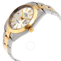 Stainless steel case with a stainless steel Rolex oyster bracelet with 18kt yellow gold center links. Fixed 18kt yellow gold bezel. Silver dial with luminous yellow gold-tone hands and index hour markers. Arabic numeral minute markers (at 5 minute intervals). Minute markers around the outer rim. Dial Type: Analog. Luminescent hands and markers. Date display at the 3 o'clock position. Rolex calibre 3235 automatic movement with a 70-hour power reserve. Scratch resistant sapphire crystal. Screw down crown. Solid case back. Case size: 41 mm. Round case shape. Oysterlock clasp. Water resistant at 100 meters / 330 feet. Functions: date, hour, minute, second. Luxury watch style. Watch label: Swiss Made. Rolex Datejust 41 Silver Dial Steel and 18K Yellow Gold Rolex Oyster Men's Watch 126303SSO. CASE Case Size: 41 Case Color: Silver-Tone Case Material: Stainless Steel Case Shape: Round Case Back: Solid BAND Band Material: Stainless Steel and 18kt Yellow Gold Rolex Oyster Band Type: Bracelet Band Color: Two-tone (Silver-tone and Gold-tone) Clasp: Oysterlock DIAL Dial Color: Silver Type: Analog Crystal: Scratch Resistant Sapphire Hands: Luminous Yellow Gold-tone Dial Markers: Index Second Markers: Minute Markers around the outer rim Luminiscence: Hands and Markers Bezel: Fixed Bezel Material: 18kt Yellow Gold Crown: Screw Down INFORMATION Brand: Rolex Series: Datejust Collection Name: Datejust Gender: Mens Model: 126303SSO Watch Label: Swiss Made Movement: Automatic Engine: Rolex Calibre 3235 Power Reserve: 70 hours FEATURES Water Resistance: 100 meters / 330 feet Calendar: Date display at the 3 o'clock position Functions: Date, Hour, Minute, Second, Chronometer Watch Features: Stainless Steel, Gold, Chronometer, Analog ADDITIONAL INFO Watch Style: Luxury Warranty: 2 Year Jomashop Warranty UPC Code: 842047109526 Jomashop Sku: RLX126303SSO Item Variation: 126303-72613 Department: Watches Category: Watches