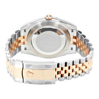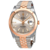 Stainless steel case with a stainless steel Rolex jubilee bracelet with 18kt everose gold center links. Fixed 18kt everose gold bezel. Sundust dial with luminous rose gold-tone hands and index hour markers. Minute markers around the outer rim. Dial Type: Analog. Luminescent hands and markers. Date display at the 3 o'clock position. Rolex calibre 3235 automatic movement with a 70-hour power reserve. Scratch resistant sapphire crystal. Screw down crown. Solid case back. Case size: 41 mm. Round case shape. Concealed crown clasp. Water resistant at 100 meters / 330 feet. Functions: date, hour, minute, second. Luxury watch style. Watch label: Swiss Made. Rolex Datejust 41 Sundust Dial Steel and 18K Everose Gold Automatic Men's Watch 126301SNSJ. CASE Case Size: 41 Case Color: Silver-Tone Case Material: Stainless Steel Case Shape: Round Case Back: Solid BAND Band Material: Stainless Steel and 18kt Everose Gold Rolex Jubile Band Type: Bracelet Band Color: Two-tone (Silver-tone and Gold-tone) Clasp: Concealed Crown DIAL Dial Color: Sundust Type: Analog Crystal: Scratch Resistant Sapphire Hands: Luminous Rose Gold-tone Dial Markers: Index Second Markers: Minute Markers around the outer rim Luminiscence: Hands and Markers Bezel: Fixed 18kt Everose Gold Crown: Screw Down INFORMATION Brand: Rolex Series: Datejust Collection Name: Datejust Gender: Mens Model: 126301SNSJ Watch Label: Swiss Made Movement: Automatic Engine: Rolex Calibre 3235 Power Reserve: 70 hours FEATURES Water Resistance: 100 meters / 330 feet Calendar: Date display at the 3 o'clock position Functions: Date, Hour, Minute, Second, Chronometer Watch Features: Stainless Steel, Gold, Chronometer, Analog ADDITIONAL INFO Watch Style: Luxury Warranty: 2 Year Jomashop Warranty UPC Code: 842047108086 Jomashop Sku: RLX126301SNSJ Item Variation: 126301-62611 Department: Watches Category: Watches