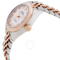 Stainless steel & rose gold case with a brushed & polished stainless steel & rose gold jubilee bracelet. Fixed rose gold-tone bezel. White dial with rose gold-tone hands and Roman numeral hour markers. Dial Type: Analog. Date display at the 3 o'clock position. Rolex Calibre 2236 Automatic movement, based upon Rolex 2235, containing 31 Jewels, bitting at 28800 vph, and has a power reserve of approximately 55 hours. Scratch resistant sapphire crystal. Screw down crown. Solid case back. Round case shape, case size: 28 mm. Rolex concealed folding crown clasp. Water resistant at 100 meters / 330 feet. Functions: date, hour, minute, second, chronometer. Datejust Series. Luxury watch style. Watch label: Swiss Made. Rolex Datejust Automatic Chronometer White Dial Ladies Watch 279171WRJ. GENERAL Box Type: Original Box CASE Case Material: Stainless Steel & Rose Gold Case Shape: Round Case Back: Solid BAND Band Material: Stainless Steel & Rose Gold Jubilee Band Type: Bracelet Band Color: Brushed & Polished Clasp: Rolex Concealed Folding Crownclasp DIAL Dial Color: White Type: Analog Crystal: Scratch Resistant Sapphire Hands: Rose Gold-tone Dial Markers: Roman Numeral Bezel: Fixed Bezel Color: Rose Gold-tone Crown: Screw Down INFORMATION Brand: Rolex Series: Datejust Collection Name: Datejust Gender: Womens Model: M279171-0021 Watch Label: Swiss Made Movement: Automatic Engine: Rolex Calibre 2236 Power Reserve: 55 hours FEATURES Water Resistance: 100 meters / 330 feet Calendar: Date display at the 3 o'clock position Functions: Date, Hour, Minute, Second, Chronometer Watch Features: Analog, Chronometer, Gold, Stainless Steel ADDITIONAL INFO Watch Style: Luxury Warranty: 2 Year Jomashop Warranty Jomashop Sku: RLX279171WRJ Item Variation: 279171-0021, 279171WRJ Department: Watches Category: Watches