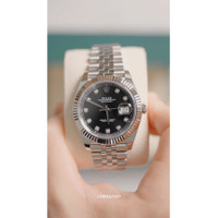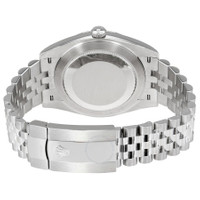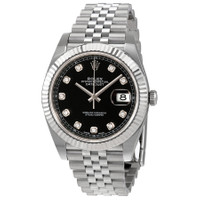 Stainless steel case with a stainless steel Rolex jubilee bracelet. Fixed fluted stainless steel bezel. Black dial with silver-tone hands and diamond / small Roman numeral hour markers. Minute markers around the outer rim. Dial Type: Analog. Date display at the 3 o'clock position. Rolex calibre 3235 automatic movement with a 70-hour power reserve. Scratch resistant sapphire crystal. Screw down crown. Solid case back. Case size: 41 mm. Round case shape. Oyster clasp. Water resistant at 100 meters / 330 feet. Functions: date, hour, minute, second. Luxury watch style. Watch label: Swiss Made. Rolex Datejust Black Diamond Dial Automatic Men's Jubilee Watch 126334BKDJ. CASE Case Size: 41 Case Color: Silver-Tone Case Material: Stainless Steel Case Shape: Round Case Back: Solid BAND Band Material: Stainless Steel Rolex Jubilee Band Type: Bracelet Band Color: Silver-tone Clasp: Oyster DIAL Dial Color: Black Type: Analog Crystal: Scratch Resistant Sapphire Hands: Silver-tone Dial Markers: Diamond / Roman Numeral Second Markers: Minute Markers around the outer rim Bezel: Fixed Fluted Bezel Color: Silver-tone Bezel Material: Stainless Steel Crown: Screw Down INFORMATION Brand: Rolex Series: Datejust Collection Name: Datejust Gender: Mens Model: 126334BKDJ Watch Label: Swiss Made Movement: Automatic Engine: Rolex Calibre 3235 Power Reserve: 70 hours FEATURES Water Resistance: 100 meters / 330 feet Calendar: Date display at the 3 o'clock position Functions: Date, Hour, Minute, Second Watch Features: Diamond, Stainless Steel, Analog ADDITIONAL INFO Watch Style: Luxury Warranty: 2 Year Jomashop Warranty UPC Code: 842047117064 Jomashop Sku: RLX126334BKDJ Item Variation: m126334-0012 Department: Watches Category: Watches
