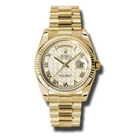18kt yellow gold case with a 18kt yellow gold rolex president bracelet. Fixed fluted 18kt yellow gold bezel. Ivory pyramid dial with yellow gold-tone hands and Roman numeral hour markers. Minute markers around the outer rim. Dial Type: Analog. Date display at 3 o'clock; day display at 12 o'clock.. Rolex Calibre 3155 automatic movement with a 48-hour power reserve. Scratch resistant sapphire crystal. Screw down crown. Solid case back. Round case shape. Case size: 36 mm. Concealed crown clasp. Water resistant at 100 meters / 330 feet. Functions: date, day, hour, minute, second, chronometer. Luxury watch style. Watch label: Swiss Made. Rolex Day-Date Ivory Pyramid Dial 18K Yellow Gold President Automatic Men's Watch 118238IPRP. GENERAL Color: Gold / Ivory / Yellow CASE Case Size: 36 Case Material: 18kt Yellow Gold Case Shape: Round Case Back: Solid BAND Band Material: 18kt Yellow Gold Rolex President Band Type: Bracelet Clasp: Concealed Crown DIAL Dial Color: Ivory Pyramid Type: Analog Crystal: Scratch Resistant Sapphire Hands: Yellow Gold-Tone Dial Markers: Roman Numeral Second Markers: Minute Markers around the outer rim Bezel: Fixed Fluted Bezel Material: 18kt Yellow Gold Crown: Screw Down INFORMATION Brand: Rolex Series: Day-Date Collection Name: Day-Date Gender: Mens Model: 118238IPRP Watch Label: Swiss Made Movement: Automatic Engine: Rolex Calibre 3155 Power Reserve: 48 hours FEATURES Water Resistance: 100 meters / 330 feet Calendar: Date display at 3 o'clock; Day Display at 12 o'clock. Functions: Date, Day, Hour, Minute, Second, Chronometer Watch Features: Gold, Chronometer, Analog ADDITIONAL INFO Watch Style: Luxury Warranty: 2 Year Jomashop Warranty UPC Code: 845960076470 Jomashop Sku: RLX118238IPRP Department: Watches Category: Watches