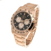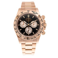 Rose gold-tone 18kt rose gold case with a rose gold-tone 18kt rose gold oyster bracelet. Fixed tachymeter scale rose gold-tone 18kt rose gold bezel. Black dial with rose gold-tone hands and index hour markers. Minute markers around the outer rim. Dial Type: Analog. Luminescent hands and markers. Chronograph - three sub-dials displaying: 60 second, 30 minute and 12 hour. Rolex Calibre 4131 automatic movement with a 72-hour power reserve. Scratch resistant sapphire crystal. Screw down crown. Solid case back. Round case shape, case size: 40 mm. Fold over clasp with a safety release. Water resistant at 100 meters / 330 feet. Functions: chronograph, hour, minute, second. Additional Info: original box, manual (complete accessories). Daytona Series. Luxury watch style. Watch label: Swiss Made. Rolex Daytona Chronograph Automatic Black Dial Men's Watch 126505-0001. CASE Case Size: 40 Case Material: 18kt Rose Gold Case Shape: Round Case Back: Solid BAND Band Material: 18kt Rose Gold Oyster Band Type: Bracelet Band Color: Rose Gold-tone Clasp: Fold Over with Safety Release DIAL Dial Color: Black Type: Analog Crystal: Scratch Resistant Sapphire Hands: Rose Gold-tone Dial Markers: Index Second Markers: Minute Markers around the outer rim Sub Dials: Three - 60 Second, 30 Minute and 12 Hour Luminiscence: Hands and Markers Bezel: Fixed Tachymeter Scale Bezel Color: Rose Gold-tone Bezel Material: 18kt Rose Gold Crown: Screw Down INFORMATION Brand: Rolex Series: Daytona Collection Name: Daytona Gender: Mens Model: 126505-0001 Watch Label: Swiss Made Movement: Automatic Engine: Rolex Calibre 4131 Power Reserve: 72 hours FEATURES Water Resistance: 100 meters / 330 feet Functions: Chronograph, Hour, Minute, Second Watch Features: Chronograph, Gold, Analog ADDITIONAL INFO Watch Style: Luxury Warranty: 2 Year Jomashop Warranty Additional Info: Original Box, Manual (Complete Accessories) Jomashop Sku: RLX126505BKSO Department: Watches Category: Watches