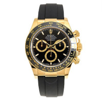 Yellow gold-tone 18kt yellow gold case with a black rubber strap. Fixed tachymeter scale black cerachrom bezel. Black dial with yellow gold-tone hands and index hour markers. Minute markers around the outer rim. Dial Type: Analog. Luminescent hands and markers. Chronograph - three sub-dials displaying: 60 second, 30 minute and 12 hour. Rolex Calibre 4131 automatic movement with a 72-hour power reserve. Scratch resistant sapphire crystal. Screw down crown. Solid case back. Round case shape, case size: 40 mm. Fold over clasp with a safety release. Water resistant at 100 meters / 330 feet. Functions: chronograph, hour, minute, second. Additional Info: original box, international warranty card, manual (complete accessories). Daytona Series. Luxury watch style. Watch label: Swiss Made. Rolex Daytona Chronograph Automatic Black Dial Men's Watch 126518LN-0008. CASE Case Size: 40 Case Material: 18kt Yellow Gold Case Shape: Round Case Back: Solid BAND Band Material: Rubber Band Type: Strap Band Color: Black Clasp: Fold Over with Safety Release DIAL Dial Color: Black Type: Analog Crystal: Scratch Resistant Sapphire Hands: Yellow Gold-tone Dial Markers: Index Second Markers: Minute Markers around the outer rim Sub Dials: Three - 60 Second, 30 Minute and 12 Hour Luminiscence: Hands and Markers Bezel: Fixed Tachymeter Scale Bezel Color: Black Bezel Material: Cerachrom Crown: Screw Down INFORMATION Brand: Rolex Series: Daytona Collection Name: Daytona Gender: Mens Model: 126518LN-0008 Watch Label: Swiss Made Movement: Automatic Engine: Rolex Calibre 4131 Power Reserve: 72 hours FEATURES Water Resistance: 100 meters / 330 feet Functions: Chronograph, Hour, Minute, Second Watch Features: Chronograph, Rubber, Gold, Analog ADDITIONAL INFO Watch Style: Luxury Warranty: 2 Year Jomashop Warranty Additional Info: Original Box, Manual (Complete Accessories) Jomashop Sku: RLX126518BKSR Department: Watches Category: Watches