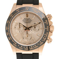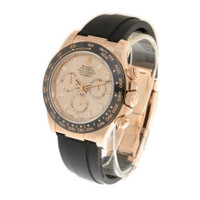 Rose gold-tone 18kt rose gold case with a black rubber strap. Fixed tachymeter scale black 18kt rose gold bezel. Sundust dial with rose gold-tone hands and diamond hour markers. Minute markers around the outer rim. Dial Type: Analog. Chronograph - three sub-dials displaying: 60 second, 30 minute and 12 hour. Rolex Calibre 4130 Automatic movement, based upon Rolex 4030, containing 44 Jewels, bitting at 28800 vph, and has a power reserve of approximately 72 hours. Scratch resistant sapphire crystal. Screw down crown. Solid case back. Round case shape, case size: 40 mm. Oysterlock clasp. Water resistant at 100 meters / 330 feet. Functions: chronograph, hour, minute, small second, chronometer. Additional Info: original box, international warranty card, manual (complete accessories). Daytona Series. Luxury watch style. Watch label: Swiss Made. Rolex Daytona Chronograph Automatic Chronometer Diamond Men's Watch 116515ln-0061. INFORMATION Brand: Rolex Series: Cosmograph Daytona Collection Name: Cosmograph Daytona Gender: Mens Model: 116515ln-0061 Watch Label: Swiss Made Movement: Automatic Engine: Rolex Calibre 4130 Power Reserve: 72 hours CASE Case Size: 40 mm Case Material: 18kt Rose Gold Case Shape: Round Case Back: Solid BAND Band Material: Rubber Band Type: Strap Band Color: Black Clasp: Oysterlock DIAL Dial Color: Sundust Type: Analog Crystal: Scratch Resistant Sapphire Hands: Rose Gold-tone Dial Markers: Diamond Second Markers: Minute Markers around the outer rim Sub Dials: Three - 60 Second, 30 Minute and 12 Hour Bezel: Fixed Tachymeter Scale Bezel Color: Black Bezel Material: 18kt Rose Gold Crown: Screw Down FEATURES Water Resistance: 100 meters / 330 feet Functions: Chronograph, Hour, Minute, Small Second, Chronometer Watch Features: Analog, Chronometer, Gold, Rubber, Chronograph, Diamond ADDITIONAL INFO Watch Style: Luxury Warranty: 2 Year Jomashop Warranty Additional Info: Original Box, International Warranty Card, Manual (Complete Accessories) Jomashop Sku: RLX116515LN0061 Department: Watches Category: Watches