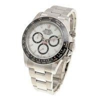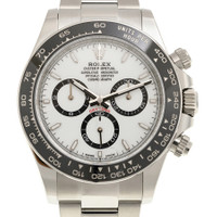 Silver-tone stainless steel case with a silver-tone stainless steel oyster bracelet. Fixed tachymeter scale black cerachrom bezel. White dial with silver-tone hands and index hour markers. Minute markers around the outer rim. Dial Type: Analog. Luminescent hands and markers. Chronograph - three sub-dials displaying: 60 second, 30 minute and 12 hour. Rolex Calibre 4131 automatic movement with a 72-hour power reserve. Scratch resistant sapphire crystal. Screw down crown. Solid case back. Round case shape, case size: 40 mm. Fold over clasp with a safety release. Water resistant at 100 meters / 330 feet. Functions: chronograph, hour, minute, second. Additional Info: original box, manual (complete accessories). Daytona Series. Luxury watch style. Watch label: Swiss Made. Rolex Daytona Chronograph Automatic White Dial Men's Watch 126500LN-0001. CASE Case Size: 40 Case Material: Stainless Steel Case Shape: Round Case Back: Solid BAND Band Material: Stainless Steel Oyster Band Type: Bracelet Band Color: Silver-tone Clasp: Fold Over with Safety Release DIAL Dial Color: White Type: Analog Crystal: Scratch Resistant Sapphire Hands: Silver-tone Dial Markers: Index Second Markers: Minute Markers around the outer rim Sub Dials: Three - 60 Second, 30 Minute and 12 Hour Luminiscence: Hands and Markers Bezel: Fixed Tachymeter Scale Bezel Color: Black Bezel Material: Cerachrom Crown: Screw Down INFORMATION Brand: Rolex Series: Daytona Collection Name: Daytona Gender: Mens Model: 126500LN-0001 Watch Label: Swiss Made Movement: Automatic Engine: Rolex Calibre 4131 Power Reserve: 72 hours FEATURES Water Resistance: 100 meters / 330 feet Functions: Chronograph, Hour, Minute, Second Watch Features: Chronograph, Stainless Steel, Analog ADDITIONAL INFO Watch Style: Luxury Warranty: 2 Year Jomashop Warranty Additional Info: Original Box, Manual (Complete Accessories) Jomashop Sku: RLX126500WSO Department: Watches Category: Watches