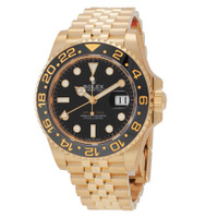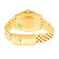 Yellow gold-tone 18kt yellow gold case with a yellow gold-tone 18kt yellow gold jubilee bracelet. Bi-directional rotating grey and black cerachrom bezel. Black dial with yellow gold-tone hands and index hour markers. Minute markers around the outer rim. Dial Type: Analog. Luminescent hands and markers. Date display at the 3 o'clock position. Rolex Calibre 3285 Automatic movement, based upon Rolex 3255, containing 31 Jewels, bitting at 28800 vph, and has a power reserve of approximately 70 hours. Scratch resistant sapphire crystal. Screw down crown. Solid case back. Round case shape, case size: 40 mm. Fold over clasp with a safety release. Water resistant at 100 meters / 330 feet. Functions: date, GMT, second time zone, hour, minute, second, chronometer. Additional Info: original box, international warranty card, manual (complete accessories). Gmt-master II Series. Luxury watch style. Watch label: Swiss Made. Rolex GMT-Master II GMT Automatic Chronometer Black Dial Men's Watch 126718GRNR INFORMATION Brand: Rolex Series: Gmt-Master Ii Collection Name: GMT-Master II Gender: Mens Model: 126718GRNR-0001 Watch Label: Swiss Made Movement: Automatic Engine: Rolex Calibre 3285 Power Reserve: 70 hours CASE Case Size: 40 mm Case Material: 18kt Yellow Gold Case Shape: Round Case Back: Solid BAND Band Material: 18kt Yellow Gold Jubilee Band Type: Bracelet Band Color: Yellow Gold-tone Clasp: Fold Over with Safety Release DIAL Dial Color: Black Type: Analog Crystal: Scratch Resistant Sapphire Hands: Yellow Gold-tone Dial Markers: Index Second Markers: Minute Markers around the outer rim Luminiscence: Hands and Markers Bezel: Bi-directional Rotating Bezel Color: Grey and Black Bezel Material: Cerachrom Crown: Screw Down FEATURES Water Resistance: 100 meters / 330 feet Calendar: Date display at the 3 o'clock position Functions: Date, GMT, Second Time Zone, Hour, Minute, Second, Chronometer Watch Features: Time Zone, Gold, Chronometer, GMT, Analog ADDITIONAL INFO Watch Style: Luxury Warranty: 2 Year Jomashop Warranty Additional Info: Original Box, International Warranty Card, Manual (Complete Accessories) Jomashop Sku: RLX126718BKSJ Department: Watches Category: Watches