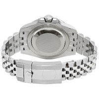 Stainless steel case with a stainless steel Rolex jubilee bracelet. Bi-directional rotating stainless steel bezel with a blue and red (Pepsi) ring. Black dial with luminous silver-tone Mercedes-logo, sword, and Breguet-style shape hands and dot hour markers. Minute markers around the outer rim. Dial Type: Analog. Luminescent hands and markers. Date display at the 3 o'clock position. Rolex calibre 3285 automatic movement, based upon Rolex 3255, containing 31 Jewels, bitting at 28800 vph, and has a power reserve of approximately 70 hours. Scratch resistant sapphire crystal. Screw down crown. Solid case back. Round case shape. Case size: 40 mm. Oyster clasp. Water resistant at 100 meters / 330 feet. Functions: date, hour, minute, second, 24 hours, GMT. Additional Info: 126710blro-0001, m126710blro-0001. Gmt-master II Series. Luxury watch style. Watch label: Swiss Made. Rolex GMT-Master II Pepsi Blue and Red Bezel Stainless Steel Jubilee Watch 126710BKSJ. CASE Case Size: 40 Case Color: Silver-Tone Case Material: Stainless Steel Case Shape: Round Case Back: Solid BAND Band Material: Stainless Steel Rolex Jubilee Band Type: Bracelet Band Color: Silver-tone Clasp: Oyster DIAL Dial Color: Black Type: Analog Crystal: Scratch Resistant Sapphire Hands: Luminous Silver-tone Mercedes-logo, sword, and Breguet-style shape Dial Markers: Dot Second Markers: Minute Markers around the outer rim Luminiscence: Hands and Markers Bezel: Bi-directional Rotating Bezel Color: Blue and Red (Pepsi) Bezel Material: Stainless Steel with a Blue and Red (Pepsi) Ring Crown: Screw Down INFORMATION Brand: Rolex Series: Gmt-Master Ii Collection Name: GMT-Master II Gender: Mens Model: M126710BLRO-0001 Watch Label: Swiss Made Movement: Automatic Engine: Rolex Calibre 3285 Power Reserve: 70 hours FEATURES Water Resistance: 100 meters / 330 feet Calendar: Date display at the 3 o'clock position Functions: Date, Hour, Minute, Second, 24 Hours, GMT Watch Features: Stainless Steel, GMT, Analog ADDITIONAL INFO Watch Style: Luxury Warranty: 2 Year Jomashop Warranty Additional Info: 126710blro-0001, m126710blro-0001 Jomashop Sku: RLX126710BKSJ Item Variation: 126710BLRO-0001, 126710BLRO Department: Watches Category: Watches