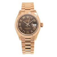 18kt rose gold case with a 18kt rose gold President bracelet. Fixed fluted 18kt rose gold bezel. Brown dial with rose gold hands and Roman numeral hour markers. Dial Type: Analog. Date display at the 3 o'clock position. Rolex calibre 2236 automatic movement, based upon Rolex 2235, containing 31 Jewels, bitting at 28800 vph, and has a power reserve of approximately 55 hours. Scratch resistant sapphire crystal. Screw down crown. Solid case back. Round case shape. Case size: 28 mm. Concealed fold over clasp. Water resistant at 100 meters / 330 feet. Functions: date, hour, minute, second. Lady Datejust Series. Luxury watch style. Watch label: Swiss Made. Item Variations: 279175-0014. Rolex Lady Datejust 18kt Rose Gold Automatic Brown Dial Ladies Watch 279175-0014. INFORMATION Brand: Rolex Series: Lady Datejust Collection Name: Lady Datejust Gender: Womens Model: 279175CHRP Watch Label: Swiss Made Movement: Automatic Engine: Rolex Calibre 2236 Power Reserve: 55 hours CASE Case Size: 28 mm Case Material: 18kt Rose Gold Case Shape: Round Case Back: Solid BAND Band Material: 18kt Rose Gold President Band Type: Bracelet Band Color: Gold-tone Clasp: Concealed Fold Over DIAL Dial Color: Brown Type: Analog Crystal: Scratch Resistant Sapphire Hands: Rose Gold Dial Markers: Roman Numeral Bezel: Fixed Fluted Bezel Color: Gold-tone Bezel Material: 18kt Rose Gold Crown: Screw Down FEATURES Water Resistance: 100 meters / 330 feet Calendar: Date display at the 3 o'clock position Functions: Date, Hour, Minute, Second Watch Features: Gold, Analog ADDITIONAL INFO Watch Style: Luxury Warranty: 2 Year Jomashop Warranty Jomashop Sku: RLX279175CHRP Item Variation: 279175-0014 Department: Watches Category: Watches