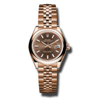 18k pink gold case with a 18k pink gold rolex jubilee bracelet. Fixed - domed 18k pink gold bezel. Chocolate dial with pink gold-tone hands and index hour markers. Minute markers around the outer rim. Dial Type: Analog. Date display at the 3 o'clock position. Automatic movement. Scratch resistant sapphire crystal. Screw down crown. Case diameter: 28 mm. Round case shape. Concealed crown clasp. Water resistant at 100 meters / 330 feet. Functions: date, hour, minute, second. Luxury watch style. Watch label: Swiss Made. Rolex Lady Datejust 28 Chocolate Dial 18K Pink Gold Rolex Jubilee Automatic Watch 279165CHSJ. INFORMATION Brand: Rolex Series: Lady Datejust Collection Name: Lady Datejust Gender: Womens Model: 279165CHSJ Watch Label: Swiss Made Movement: Automatic Engine: Rolex Calibre 2236 Power Reserve: 55 hours CASE Case Size: 28 mm Case Material: 18kt Pink Gold Case Shape: Round BAND Band Material: 18kt Pink Gold Rolex Jubilee Band Type: Bracelet Band Color: Pink Gold-tone Clasp: Concealed Crown DIAL Dial Color: Chocolate Type: Analog Crystal: Scratch Resistant Sapphire Hands: Pink Gold-Tone Dial Markers: Index Second Markers: Minute Markers around the outer rim Bezel: Fixed Domed Bezel Material: 18kt Pink Gold Crown: Screw Down FEATURES Water Resistance: 100 meters / 330 feet Calendar: Date display at the 3 o'clock position Functions: Date, Hour, Minute, Second, Chronometer Watch Features: Gold, Chronometer, Analog ADDITIONAL INFO Watch Style: Luxury Warranty: 2 Year Jomashop Warranty UPC Code: 845960081900 Jomashop Sku: RLX279165CHSJ Department: Watches Category: Watches