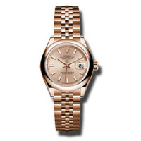 18k pink gold case with a 18k pink gold rolex jubilee bracelet. Fixed - domed 18k pink gold bezel. Pink sundust dial with pink gold-tone hands and index hour markers. Minute markers around the outer rim. Dial Type: Analog. Date display at the 3 o'clock position. Automatic movement. Scratch resistant sapphire crystal. Screw down crown. Case diameter: 28 mm. Round case shape. Concealed crown clasp. Water resistant at 100 meters / 330 feet. Functions: date, hour, minute, second. Luxury watch style. Watch label: Swiss Made. Rolex Lady Datejust 28 Pink Sundust Dial 18K Pink Gold Rolex Jubilee Automatic Watch 279165PSJ. INFORMATION Brand: Rolex Series: Lady Datejust Collection Name: Lady Datejust Gender: Womens Model: 279165PSJ Watch Label: Swiss Made Movement: Automatic Engine: Rolex Calibre 2236 Power Reserve: 55 hours CASE Case Size: 28 mm Case Material: 18kt Pink Gold Case Shape: Round BAND Band Material: 18kt Pink Gold Rolex Jubilee Band Type: Bracelet Band Color: Pink Gold-tone Clasp: Concealed Crown DIAL Dial Color: Pink Sundust Type: Analog Crystal: Scratch Resistant Sapphire Hands: Pink Gold-Tone Dial Markers: Index Second Markers: Minute Markers around the outer rim Bezel: Fixed Domed Bezel Material: 18kt Pink Gold Crown: Screw Down FEATURES Water Resistance: 100 meters / 330 feet Calendar: Date display at the 3 o'clock position Functions: Date, Hour, Minute, Second, Chronometer Watch Features: Gold, Chronometer, Analog ADDITIONAL INFO Watch Style: Luxury Warranty: 2 Year Jomashop Warranty UPC Code: 845960081917 Jomashop Sku: RLX279165PSJ Department: Watches Category: Watches