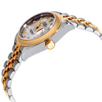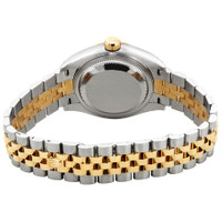 Stainless steel case with a stainless steel Rolex jubilee bracelet with 18kt yellow gold center links. Fixed 18kt yellow gold bezel. Silver dial with yellow gold-tone hands and diamond hour markers. Dial Type: Analog. Date display at the 3 o'clock position. Rolex calibre 2236 quartz movement with a 55-hour power reserve. Scratch resistant sapphire crystal. Screw down crown. Solid case back. Round case shape. Case size: 28 mm. Oysterlock clasp. Water resistant at 100 meters / 330 feet. Functions: date, hour, minute, second. Luxury watch style. Watch label: Swiss Made. Rolex Lady Datejust 28 Silver Dial Steel and 18K Yellow Gold Jubilee Watch 279163SDJ. INFORMATION Brand: Rolex Series: Lady Datejust Collection Name: Lady Datejust Gender: Womens Model: 279163SDJ Watch Label: Swiss Made Movement: Quartz Engine: Rolex Calibre 2236 Power Reserve: 55 hours CASE Case Size: 28 mm Case Color: Silver-Tone Case Material: Stainless Steel Case Shape: Round Case Back: Solid BAND Band Material: Stainless Steel and 18kt Yellow Gold Rolex Jubilee Band Type: Bracelet Band Color: Silver-tone Clasp: Oysterlock DIAL Dial Color: Silver Type: Analog Crystal: Scratch Resistant Sapphire Hands: Yellow Gold-tone Dial Markers: Diamond Bezel: Fixed Bezel Material: 18kt Yellow Gold Crown: Screw Down FEATURES Water Resistance: 100 meters / 330 feet Calendar: Date display at the 3 o'clock position Functions: Date, Hour, Minute, Second Watch Features: Diamond, Stainless Steel, Gold, Analog ADDITIONAL INFO Watch Style: Luxury Warranty: 2 Year Jomashop Warranty UPC Code: 842047124956 Jomashop Sku: RLX279163SDJ Department: Watches Category: Watches