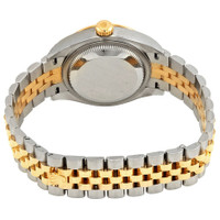 Stainless steel and 18k yellow gold case with a stainless steel and 18k yellow gold rolex jubilee bracelet. Fixed bezel. Silver dial with gold-tone hands and Roman numeral hour markers. Dial Type: Analog. Date display at the 3 o'clock position. Rolex Calibre 2236 automatic movement with about 55 hours of power reserve. Scratch resistant sapphire crystal. Screw down crown. Solid case back. Case size: 28 mm. Round case shape. Water resistant at 100 meters / 330 feet. Functions: date, hour, minute, second. Luxury watch style. Watch label: Swiss Made. Rolex Lady Datejust 28 Silver Dial Steel and 18K Yellow Gold Watch 279163SRJ. INFORMATION Brand: Rolex Series: Datejust Collection Name: Lady Datejust Gender: Womens Model: 279163SRJ Watch Label: Swiss Made Movement: Automatic Engine: Rolex Calibre 2236 Power Reserve: 55 hours CASE Case Size: 28 mm Case Material: Stainless Steel and 18kt Yellow Gold Case Shape: Round Case Back: Solid BAND Band Material: Stainless Steel and 18K Yellow Gold Rolex Jubilee Band Type: Bracelet Band Color: Two-tone (Silver-tone and Yellow Gold-tone) DIAL Dial Color: Silver Type: Analog Crystal: Scratch Resistant Sapphire Hands: Gold-tone Dial Markers: Roman Numeral Bezel: Fixed Bezel Material: 18kt Yellow Gold Crown: Screw Down FEATURES Water Resistance: 100 meters / 330 feet Calendar: Date display at the 3 o'clock position Functions: Date, Hour, Minute, Second Watch Features: Stainless Steel, Gold, Analog ADDITIONAL INFO Watch Style: Luxury Warranty: 2 Year Jomashop Warranty Jomashop Sku: RLX279163SRJ Department: Watches Category: Watches