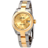 Stainless steel case with a stainless steel Rolex oyster bracelet with 18kt yellow gold center links. Fixed domed 18kt yellow gold bezel. Champagne dial with yellow gold-tone hands and Roman numeral hour markers. Dial Type: Analog. Date display at the 3 o'clock position. Rolex calibre 2236 automatic movement with a 55-hour power reserve. Scratch resistant sapphire crystal. Screw down crown. Solid case back. Round case shape. Case size: 28 mm. Oysterlock clasp. Water resistant at 100 meters / 330 feet. Functions: date, hour, minute, second. Luxury watch style. Watch label: Swiss Made. Rolex Lady Datejust 28 Steel and 18K Yellow Gold Watch 279163CRO. INFORMATION Brand: Rolex Series: Lady Datejust Collection Name: Lady Datejust Gender: Womens Model: 279163CRO Watch Label: Swiss Made Movement: Automatic Engine: Rolex Calibre 2236 Power Reserve: 55 hours CASE Case Size: 28 mm Case Color: Silver-Tone Case Material: Stainless Steel Case Shape: Round Case Back: Solid BAND Band Material: Stainless Steel and 18kt Yellow Gold Rolex Oyster Band Type: Bracelet Band Color: Two-tone (Silver-tone and Gold-tone) Clasp: Oysterlock DIAL Dial Color: Champagne Type: Analog Crystal: Scratch Resistant Sapphire Hands: Yellow Gold-tone Dial Markers: Roman Numeral Bezel: Fixed Domed Bezel Material: 18kt Yellow Gold Crown: Screw Down FEATURES Water Resistance: 100 meters / 330 feet Calendar: Date display at the 3 o'clock position Functions: Date, Hour, Minute, Second Watch Features: Stainless Steel, Gold, Analog ADDITIONAL INFO Watch Style: Luxury Warranty: 2 Year Jomashop Warranty UPC Code: 842047112342 Jomashop Sku: RLX279163CRO Department: Watches Category: Watches