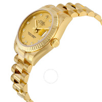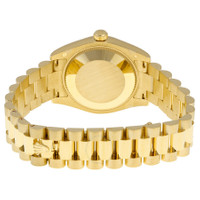 18k yellow gold case with a 18k yellow gold Rolex President bracelet. Fixed - fluted 18k yellow gold bezel. Champagne dial with yellow gold-tone hands and diamond hour markers. Dial Type: Analog. Date display at the 3 o'clock position. Automatic movement with a 48-hour power reserve. Scratch resistant sapphire crystal. Screw down crown. Solid case back. Case diameter: 31 mm. Round case shape. Concealed Crown clasp. Water resistant at 100 meters / 330 feet. Functions: date, hour, minute, second. Luxury watch style. Watch label: Swiss Made. Rolex Lady-Datejust 31 Champagne Dial 18K Yellow Gold President Automatic Ladies Diamond Watch 178278CDP. INFORMATION Brand: Rolex Series: Datejust Lady 31 Collection Name: Datejust Lady 31 Gender: Womens Model: 178278CDP Watch Label: Swiss Made Movement: Automatic Engine: Rolex Calibre 2235 Power Reserve: 48 hours CASE Case Size: 31 mm Case Material: 18kt Yellow Gold Case Shape: Round Case Back: Solid BAND Band Material: 18kt Yellow Gold Rolex President Band Type: Bracelet Band Color: Yellow Gold-tone Clasp: Concealed Crown DIAL Dial Color: Champagne Type: Analog Crystal: Scratch Resistant Sapphire Hands: Yellow Gold-Tone Dial Markers: Diamond Bezel: Fixed Fluted Bezel Material: 18kt Yellow Gold Crown: Screw Down FEATURES Water Resistance: 100 meters / 330 feet Calendar: Date display at the 3 o'clock position Functions: Date, Hour, Minute, Second, Chronometer Watch Features: Diamond, Gold, Chronometer, Analog ADDITIONAL INFO Watch Style: Luxury Warranty: 2 Year Jomashop Warranty UPC Code: 845960078146 Jomashop Sku: RLX178278CDP Department: Watches Category: Watches