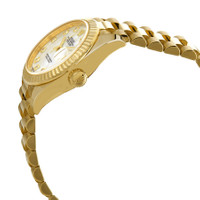 18kt yellow gold case with a 18kt yellow gold oyster bracelet. Fixed fluted 18kt yellow gold bezel. White mother of pearl dial with yellow gold hands and diamond hour markers. Dial Type: Analog. Date display at the 3 o'clock position. Rolex Calibre 2236 Automatic movement, based upon Rolex 2235, containing 31 Jewels, bitting at 28800 vph, and has a power reserve of approximately 55 hours. Scratch resistant sapphire crystal. Screw down crown. Solid case back. Round case shape. Case size: 28 mm. Concealed fold over crown clasp. Water resistant at 100 meters / 330 feet. Functions: date, hour, minute, second, chronometer. Lady Datejust Series. Luxury watch style. Watch label: Swiss Made. Rolex Lady Datejust Automatic Chronometer Diamond White Mother of Pearl Dial Ladies Watch 279178MDP. CASE Case Size: 28 Case Color: Yellow Gold Case Material: 18kt Yellow Gold Case Shape: Round Case Back: Solid BAND Band Material: 18kt Yellow Gold Oyster Band Type: Bracelet Band Color: Yellow Gold Clasp: Concealed Fold Over Crown DIAL Dial Color: White Mother of Pearl Type: Analog Crystal: Scratch Resistant Sapphire Hands: Yellow Gold Dial Markers: Diamond Bezel: Fixed Fluted Bezel Color: Yellow Gold Bezel Material: 18kt Yellow Gold Crown: Screw Down INFORMATION Brand: Rolex Series: Lady-Datejust Collection Name: Lady Datejust Gender: Womens Model: M279178-0025 Watch Label: Swiss Made Movement: Automatic Engine: Rolex Calibre 2236 Power Reserve: 55 hours FEATURES Water Resistance: 100 meters / 330 feet Calendar: Date display at the 3 o'clock position Functions: Date, Hour, Minute, Second, Chronometer Watch Features: Diamond, Gold, Analog, Chronometer ADDITIONAL INFO Watch Style: Luxury Warranty: 2 Year Jomashop Warranty Jomashop Sku: RLX279178MDP Item Variation: 279178-0025, 279178MDP Department: Watches Category: Watches