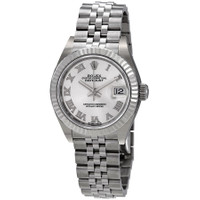 Silver-tone stainless steel case with a silver-tone stainless steel rolex jubilee bracelet. Fixed - fluted silver-tone stainless steel bezel. Silver dial with silver-tone hands and Roman numeral hour markers. Dial Type: Analog. Date display at the 3 o'clock position. Rolex Calibre 2236 automatic movement with a 55-hour power reserve. Scratch resistant sapphire crystal. Screw down crown. Solid case back. Round case shape. Case size: 28 mm. Fold over with safety release clasp. Water resistant at 100 meters / 330 feet. Functions: date, hour, minute, second. Luxury watch style. Watch label: Swiss Made. Rolex Lady Datejust Automatic Silver Dial Ladies Jubilee Watch 279174SRJ. INFORMATION Brand: Rolex Series: Lady Datejust Collection Name: Lady Datejust Gender: Womens Model: 279174SRJ Watch Label: Swiss Made Movement: Automatic Engine: Rolex Calibre 2236 Power Reserve: 55 hours CASE Case Size: 28 mm Case Color: Silver-Tone Case Material: Stainless Steel Case Shape: Round Case Back: Solid BAND Band Material: Stainless Steel Rolex Jubilee Band Type: Bracelet Band Color: Silver-tone Clasp: Folding DIAL Dial Color: Silver Type: Analog Crystal: Scratch Resistant Sapphire Hands: Silver-tone Dial Markers: Roman Numeral Bezel: Fixed Fluted Bezel Color: Silver-tone Bezel Material: Stainless Steel Crown: Screw Down FEATURES Water Resistance: 100 meters / 330 feet Calendar: Date display at the 3 o'clock position Functions: Date, Hour, Minute, Second Watch Features: Stainless Steel, Analog ADDITIONAL INFO Watch Style: Luxury Warranty: 2 Year Jomashop Warranty Jomashop Sku: RLX279174SRJ Department: Watches Category: Watches