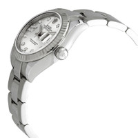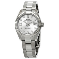 Stainless steel case with a stainless steel Rolex oyster bracelet. Fixed fluted stainless steel bezel. Silver dial with silver-tone hands and diamond hour markers. Diamond-set Roman numeral appears at the 9 o'clock position. Dial Type: Analog. Date display at the 3 o'clock position. Rolex calibre 2236 automatic movement, based upon Rolex 2235, containing 31 Jewels, bitting at 28800 vph, and has a power reserve of approximately 55 hours. Scratch resistant sapphire crystal. Screw down crown. Solid case back. Round case shape. Case size: 28 mm. Folding clasp. Water resistant at 100 meters / 330 feet. Functions: date, hour, minute, second. Lady Datejust Series. Luxury watch style. Watch label: Swiss Made. Rolex Lady Datejust Automatic Silver Roman Diamond Dial Ladies Oyster Watch 279174SRDO. INFORMATION Brand: Rolex Series: Lady Datejust Collection Name: Lady Datejust Gender: Womens Model: 279174SRDO Watch Label: Swiss Made Movement: Automatic Engine: Rolex Calibre 2236 Power Reserve: 55 hours CASE Case Size: 28 mm Case Color: Silver-Tone Case Material: Stainless Steel Case Shape: Round Case Back: Solid BAND Band Material: Stainless Steel Rolex Oyster Band Type: Bracelet Band Color: Silver-tone Clasp: Folding DIAL Dial Color: Silver Type: Analog Crystal: Scratch Resistant Sapphire Hands: Silver-tone Dial Markers: Diamond Second Markers: Diamond-set Roman Numeral appears at the 9 o'clock position Bezel: Fixed Fluted Bezel Color: Silver-tone Bezel Material: Stainless Steel Crown: Screw Down FEATURES Water Resistance: 100 meters / 330 feet Calendar: Date display at the 3 o'clock position Functions: Date, Hour, Minute, Second Watch Features: Diamond, Stainless Steel, Analog ADDITIONAL INFO Watch Style: Luxury Warranty: 2 Year Jomashop Warranty Jomashop Sku: RLX279174SRDO Department: Watches Category: Watches