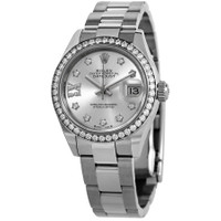 Silver-tone stainless steel case with a silver-tone stainless steel rolex oyster bracelet. Fixed silver-tone diamond set bezel. Silver dial with silver-tone hands and Roman - diamond hour markers. Dial Type: Analog. Date display at the 3 o'clock position. Rolex Calibre 2236 automatic movement with a 55-hour power reserve. Scratch resistant sapphire crystal. Screw down crown. Solid case back. Round case shape. Case size: 28 mm. Fold over with safety release clasp. Water resistant at 100 meters / 330 feet. Functions: date, hour, minute, second. Luxury watch style. Watch label: Swiss Made. Rolex Lady Datejust Automatic Silver Roman Diamond Dial Ladies Oyster Watch 279384SRDO. INFORMATION Brand: Rolex Series: Lady Datejust Collection Name: Lady Datejust Gender: Womens Model: 279384SRDO Watch Label: Swiss Made Movement: Automatic Engine: Rolex Calibre 2236 Power Reserve: 55 hours CASE Case Size: 28 mm Case Color: Silver-Tone Case Material: Stainless Steel Case Shape: Round Case Back: Solid BAND Band Material: Stainless Steel Rolex Oyster Band Type: Bracelet Band Color: Silver-tone Clasp: Folding DIAL Dial Color: Silver Type: Analog Crystal: Scratch Resistant Sapphire Hands: Silver-tone Dial Markers: Roman - Diamond Bezel: Fixed Bezel Color: Silver-tone Bezel Material: Diamond Set Crown: Screw Down FEATURES Water Resistance: 100 meters / 330 feet Calendar: Date display at the 3 o'clock position Functions: Date, Hour, Minute, Second Watch Features: Diamond, Stainless Steel, Analog ADDITIONAL INFO Watch Style: Luxury Warranty: 2 Year Jomashop Warranty Jomashop Sku: RLX279384SRDO Department: Watches Category: Watches