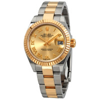 Stainless steel case with a stainless steel and 18kt yellow gold rolex oyster bracelet. Fixed fluted gold bezel. Champagne dial with gold-tone hands and Roman numeral hour markers. Dial Type: Analog. Date display at the 3 o'clock position. Rolex Calibre 2236 automatic movement with a 55-hour power reserve. Scratch resistant sapphire crystal. Screw down crown. Solid case back. Round case shape. Case size: 28 mm. Concealed crown clasp. Water resistant at 100 meters / 330 feet. Functions: date, hour, minute, second, chronometer. Luxury watch style. Watch label: Swiss Made. Rolex Lady Datejust Champagne Dial Ladies Steel and 18kt Yellow Gold Oyster Watch 279173CRO. INFORMATION Brand: Rolex Series: Lady Datejust Collection Name: Lady Datejust Gender: Womens Model: 279173CRO Watch Label: Swiss Made Movement: Automatic Engine: Rolex Calibre 2236 Power Reserve: 55 hours CASE Case Size: 28 mm Case Color: Silver-Tone Case Material: Stainless Steel Case Shape: Round Case Back: Solid BAND Band Material: Stainless Steel and 18kt Yellow Gold Rolex Oyster Band Type: Bracelet Band Color: Two-tone (Silver-tone and Gold-tone) Clasp: Concealed Crown DIAL Dial Color: Champagne Type: Analog Crystal: Scratch Resistant Sapphire Hands: Gold-tone Dial Markers: Roman Numeral Bezel: Fixed Fluted Bezel Material: 18kt Yellow Gold Crown: Screw Down FEATURES Water Resistance: 100 meters / 330 feet Calendar: Date display at the 3 o'clock position Functions: Date, Hour, Minute, Second, Chronometer Watch Features: Stainless Steel, Gold, Chronometer, Analog ADDITIONAL INFO Watch Style: Luxury Warranty: 2 Year Jomashop Warranty UPC Code: 842047146873 Jomashop Sku: RLX279173CRO Item Variation: 279173-0010, m279173-0010 Department: Watches Category: Watches