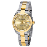 Stainless steel and 18k yellow gold case with a stainless steel and 18k yellow gold Rolex Oyster bracelet. Fixed - domed 18k yellow gold bezel. Champagne dial with yellow gold-tone hands and index hour markers. Minute markers around the outer rim. Dial Type: Analog. Date display at the 3 o'clock position. Rolex Calibre 2236 automatic movement with about 55 hours of power reserve. Scratch resistant sapphire crystal. Screw down crown. Solid case back. Case size: 28 mm. Round case shape. Oysterlock clasp. Water resistant at 100 meters / 330 feet. Functions: date, hour, minute, second. Luxury watch style. Watch label: Swiss Made. Rolex Lady Datejust Champagne Dial Steel and 18K Yellow Gold Oyster Watch 279163CSO. INFORMATION Brand: Rolex Series: Lady Datejust Collection Name: Lady Datejust Gender: Womens Model: 279163CSO Watch Label: Swiss Made Movement: Automatic Engine: Rolex Calibre 2236 Power Reserve: 55 hours CASE Case Size: 28 mm Case Material: Stainless Steel and 18kt Yellow Gold Case Shape: Round Case Back: Solid BAND Band Material: Stainless Steel and 18kt Yellow Gold Rolex Oyster Band Type: Bracelet Band Color: Two-tone (Silver-tone and Yellow Gold-tone) Clasp: Oysterlock DIAL Dial Color: Champagne Type: Analog Crystal: Scratch Resistant Sapphire Hands: Yellow Gold-Tone Dial Markers: Index Second Markers: Minute Markers around the outer rim Bezel: Fixed Domed Bezel Material: 18kt Yellow Gold Crown: Screw Down FEATURES Water Resistance: 100 meters / 330 feet Calendar: Date display at the 3 o'clock position Functions: Date, Hour, Minute, Second, Chronometer Watch Features: Stainless Steel, Gold, Chronometer, Analog ADDITIONAL INFO Watch Style: Luxury Warranty: 2 Year Jomashop Warranty Jomashop Sku: RLX279163CSO Department: Watches Category: Watches