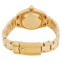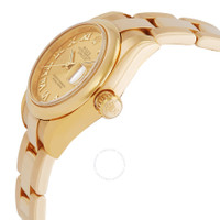 18k yellow gold case with a 18k yellow gold oyster bracelet. 18k yellow gold bezel. Champagne dial with gold tone hands and Roman numeral hour markers. Date displays at the 3 o'clock position. Self-winding movement. Scratch resistant sapphire crystal. Case diameter: 26 mm. Water resistant at 100 meters/ 330 feet. Functions: hours, minutes, seconds, date. Rolex Lady Datejust Champagne Roman Dial Domed Bezel 18k Yellow Gold Case and Oyster Bracelet Watch 179168CRO. GENERAL Color: Champagne / Gold / Yellow CASE Case Size: 26 Case Material: 18kt Yellow Gold Case Shape: Round BAND Band Material: 18kt Yellow Gold Oyster Band Type: Bracelet DIAL Dial Color: Champagne Type: Analog Crystal: Scratch Resistant Sapphire Hands: Gold Tone Dial Markers: Roman Numeral Bezel: 18k Yellow Gold Crown: Screw Down INFORMATION Brand: Rolex Series: Lady Datejust Collection Name: Lady Datejust Gender: Womens Model: 179168CRO Watch Label: Swiss Made Movement: Automatic Engine: Rolex Calibre 2235 Power Reserve: 48 hours FEATURES Water Resistance: 100 meters / 330 feet Calendar: Date display at the 3 o'clock position Functions: Date, Hour, Minute, Second, Chronometer Watch Features: Gold, Chronometer, Analog ADDITIONAL INFO Watch Style: Luxury Warranty: 2 Year Jomashop Warranty Jomashop Sku: RLX179168CRO Department: Watches Category: Watches