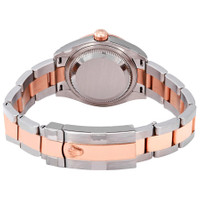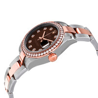 Stainless steel case with a stainless steel and 18ct everose gold rolex oyster bracelet. Fixed, diamond set everose gold bezel. Chocolate dial with everose gold hands and diamonds hour markers. Dial Type: Analog. Date display at the 3 o'clock position. Rolex Calibre 2236 automatic movement with a 55-hour power reserve. Scratch resistant sapphire crystal. Screw down crown. Solid case back. Round case shape. Case size: 28 mm. Water resistant at 100 meters / 330 feet. Functions: date, hour, minute, second. Luxury watch style. Watch label: Swiss Made. Rolex Lady Datejust Chocolate Diamond Dial Ladies Steel and 18ct Everose Gold Watch 279381CHDO. INFORMATION Brand: Rolex Series: Lady Datejust Collection Name: Lady Datejust Gender: Womens Model: 279381CHDO Watch Label: Swiss Made Movement: Automatic Engine: Rolex Calibre 2236 Power Reserve: 55 hours CASE Case Size: 28 mm Case Color: Silver-Tone Case Material: Stainless Steel Case Shape: Round Case Back: Solid BAND Band Material: Stainless Steel and 18ct Everose Gold Rolex Oyster Band Type: Bracelet Band Color: Two-tone (Silver-tone and Rose Gold-tone) DIAL Dial Color: Chocolate Type: Analog Crystal: Scratch Resistant Sapphire Hands: Everose Gold Dial Markers: Diamonds Bezel: Fixed Bezel Color: 18ct Everose Gold Bezel Material: Everose Gold Crown: Screw Down FEATURES Water Resistance: 100 meters / 330 feet Calendar: Date display at the 3 o'clock position Functions: Date, Hour, Minute, Second Watch Features: Diamond, Stainless Steel, Gold, Analog ADDITIONAL INFO Watch Style: Luxury Warranty: 2 Year Jomashop Warranty Jomashop Sku: RLX279381CHDO Department: Watches Category: Watches