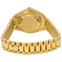 18kt yellow gold case with a 18kt yellow gold President bracelet. Fixed 18kt yellow gold bezel set with diamonds. Mint green dial with yellow gold hands and diamond hour markers. Dial Type: Analog. Date display at the 3 o'clock position. Rolex calibre 2236 automatic movement, based upon Rolex 2235, containing 31 Jewels, bitting at 28800 vph, and has a power reserve of approximately 55 hours. Scratch resistant sapphire crystal. Screw down crown. Solid case back. Round case shape. Case size: 28 mm. Fold over clasp. Water resistant at 100 meters / 330 feet. Functions: date, hour, minute, second. Lady Datejust Series. Luxury watch style. Watch label: Swiss Made. Rolex Lady-Datejust Mint Green Dial 18 Carat Yellow Gold President Watch 279138GNDP. INFORMATION Brand: Rolex Series: Lady Datejust Collection Name: Lady Datejust Gender: Womens Model: 279138GNDP Watch Label: Swiss Made Movement: Automatic Engine: Rolex Calibre 2236 Power Reserve: 55 hours CASE Case Size: 28 mm Case Material: 18kt Yellow Gold Case Shape: Round Case Back: Solid BAND Band Material: 18kt Yellow Gold President Band Type: Bracelet Band Color: Yellow Gold-tone Clasp: Fold Over DIAL Dial Color: Mint Green Type: Analog Crystal: Scratch Resistant Sapphire Hands: Yellow Gold Dial Markers: Diamond Bezel: Fixed Bezel Color: 18kt Yellow Gold Bezel Material: 18kt Yellow Gold set with Diamonds Crown: Screw Down FEATURES Water Resistance: 100 meters / 330 feet Calendar: Date display at the 3 o'clock position Functions: Date, Hour, Minute, Second Watch Features: Diamond, Gold, Analog ADDITIONAL INFO Watch Style: Luxury Warranty: 2 Year Jomashop Warranty Jomashop Sku: RLX279138GNDP Department: Watches Category: Watches