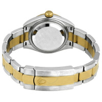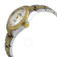 Stainless steel case with a stainless steel Rolex oyster bracelet with 18kt yellow gold center links. Fixed domed 18kt yellow gold bezel. Mother of pearl dial with yellow gold hands and diamond hour markers. Dial Type: Analog. Date display at the 3 o'clock position. Rolex calibre 2236 automatic movement, based upon Rolex 2235, containing 31 Jewels, bitting at 28800 vph, and has a power reserve of approximately 55 hours. Scratch resistant sapphire crystal. Screw down crown. Solid case back. Round case shape. Case size: 28 mm. Oysterlock clasp. Water resistant at 100 meters / 330 feet. Functions: date, hour, minute, second, chronometer. Lady Datejust Series. Luxury watch style. Watch label: Swiss Made. Rolex Lady Datejust Mother of Pearl Diamond Steel and 18K Yellow Gold Oyster Watch 279173MDO. INFORMATION Brand: Rolex Series: Lady Datejust Collection Name: Lady Datejust Gender: Womens Model: 279173MDO Watch Label: Swiss Made Movement: Automatic Engine: Rolex Calibre 2236 Power Reserve: 55 hours CASE Case Size: 28 mm Case Material: Stainless Steel Case Shape: Round Case Back: Solid BAND Band Material: Stainless Steel with 18kt Yellow Gold Rolex Oyster Band Type: Bracelet Band Color: Silver-tone Clasp: Oysterlock DIAL Dial Color: Mother of Pearl Type: Analog Crystal: Scratch Resistant Sapphire Hands: Yellow Gold Dial Markers: Diamond Bezel: Fixed Domed Bezel Material: 18kt Yellow Gold Crown: Screw Down FEATURES Water Resistance: 100 meters / 330 feet Calendar: Date display at the 3 o'clock position Functions: Date, Hour, Minute, Second, Chronometer Watch Features: Diamond, Stainless Steel, Gold, Chronometer, Analog ADDITIONAL INFO Watch Style: Luxury Warranty: 2 Year Jomashop Warranty UPC Code: 842047188804 Jomashop Sku: RLX279173MDO Department: Watches Category: Watches