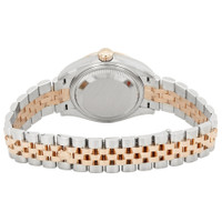 Stainless steel case with a stainless steel Rolex jubilee bracelet with 18kt everose gold center links. Fixed 18kt everose gold bezel set with diamonds. Mother of pearl dial with everose gold-tone hands and diamond hour markers. Dial Type: Analog. Date display at the 3 o'clock position. Rolex calibre 2236 automatic movement with a 55-hour power reserve. Scratch resistant sapphire crystal. Screw down crown. Solid case back. Round case shape. Case size: 28 mm. Concealed crown clasp. Water resistant at 100 meters / 330 feet. Functions: date, hour, minute, second, chronometer. Luxury watch style. Watch label: Swiss Made. Rolex Lady Datejust Mother of Pearl Steel and 18K Everose Gold Diamond Jubilee Watch 279381MDJ. CASE Case Size: 28 Case Color: Silver-Tone Case Material: Stainless Steel Case Shape: Round Case Back: Solid BAND Band Material: Stainless Steel and 18kt Everose Gold Rolex Jubile Band Type: Bracelet Band Color: Two-tone (Silver-tone and Rose Gold-tone) Clasp: Concealed Crown DIAL Dial Color: Mother of Pearl Type: Analog Crystal: Scratch Resistant Sapphire Hands: Everose Gold-tone Dial Markers: Diamond Bezel: Fixed Bezel Color: 18kt Everose Gold Bezel Material: 18kt Everose Gold set with Diamonds Crown: Screw Down INFORMATION Brand: Rolex Series: Lady-Datejust Collection Name: Lady Datejust Gender: Womens Model: 279381MDJ Watch Label: Swiss Made Movement: Automatic Engine: Rolex Calibre 2236 Power Reserve: 55 hours FEATURES Water Resistance: 100 meters / 330 feet Calendar: Date display at the 3 o'clock position Functions: Date, Hour, Minute, Second, Chronometer Watch Features: Analog, Chronometer, Gold, Stainless Steel, Diamond ADDITIONAL INFO Watch Style: Luxury Warranty: 2 Year Jomashop Warranty UPC Code: 842047138069 Jomashop Sku: RLX279381MDJ Item Variation: M279381RBR-0013 Department: Watches Category: Watches