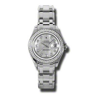 18k white gold case with a 18k white gold rolex pearlmaster bracelet. Fixed bezel set with 116 diamonds bezel. Mother of pearl dial with silver-tone hands and diamond hour markers. Dial Type: Analog. Date display at the 3 o'clock position. Automatic movement. Scratch resistant sapphire crystal. Screw down crown. Case diameter: 29 mm. Round case shape. Concealed crown clasp. Water resistant at 100 meters / 330 feet. Functions: date, hour, minute, second. Luxury watch style. Watch label: Swiss Made. Rolex Lady-Datejust Pearlmaster Mother Of Pearl Diamond Dial 18K White Gold Automatic Ladies Watch 80339MDPM. GENERAL Color: Gold / Mother of pearl / White INFORMATION Brand: Rolex Series: Lady-Datejust Pearlmaster Collection Name: Lady-Datejust Pearlmaster Gender: Womens Model: 80339MDPM Watch Label: Swiss Made Movement: Automatic CASE Case Size: 29 mm Case Material: 18kt White Gold Case Shape: Round Case Back: Solid BAND Band Material: 18kt White Gold Rolex Pearlmaster Band Type: Bracelet Clasp: Concealed Crown DIAL Dial Color: Mother of Pearl Type: Analog Crystal: Scratch Resistant Sapphire Hands: Silver-tone Dial Markers: Diamond Bezel: Fixed Bezel Color: 18kt White Gold Bezel Material: 116 Diamond Set Crown: Screw Down FEATURES Water Resistance: 100 meters / 330 feet Calendar: Date display at the 3 o'clock position Functions: Date, Hour, Minute, Second Watch Features: Diamond, Gold, Analog ADDITIONAL INFO Watch Style: Luxury Warranty: 2 Year Jomashop Warranty UPC Code: 845960082280 Jomashop Sku: RLX80339MDPM Department: Watches Category: Watches