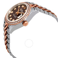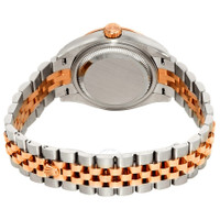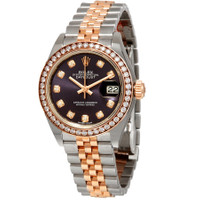 Stainless steel case with a stainless steel Rolex Jubilee bracelet with 18kt everose gold center links. Fixed 18kt everose gold bezel set with diamonds. Purple dial with everose gold hands and diamond hour markers. Dial Type: Analog. Date display at the 3 o'clock position. Rolex calibre 2236 automatic movement with a 55-hour power reserve. Scratch resistant sapphire crystal. Screw down crown. Solid case back. Round case shape. Case size: 28 mm. Concealed crown clasp. Water resistant at 100 meters / 330 feet. Functions: date, hour, minute, second, chronometer. Luxury watch style. Watch label: Swiss Made. Rolex Lady Datejust Purple Diamond Dial Ladies Steel and 18kt Everose Gold Jubile Watch 279381PUDJ. INFORMATION Brand: Rolex Series: Lady Datejust Collection Name: Lady Datejust Gender: Womens Model: 279381PUDJ Watch Label: Swiss Made Movement: Automatic Engine: Rolex Calibre 2236 Power Reserve: 55 hours CASE Case Size: 28 mm Case Color: Silver-Tone Case Material: Stainless Steel Case Shape: Round Case Back: Solid BAND Band Material: Stainless Steel and 18kt Everose Gold Rolex Jubile Band Type: Bracelet Band Color: Silver-tone Clasp: Concealed Crown DIAL Dial Color: Purple Type: Analog Crystal: Scratch Resistant Sapphire Hands: Everose Gold Dial Markers: Diamond Bezel: Fixed Bezel Color: 18kt Everose Gold Bezel Material: 18kt Everose Gold set with Diamonds Crown: Screw Down FEATURES Water Resistance: 100 meters / 330 feet Calendar: Date display at the 3 o'clock position Functions: Date, Hour, Minute, Second, Chronometer Watch Features: Diamond, Stainless Steel, Gold, Chronometer, Analog ADDITIONAL INFO Watch Style: Luxury Warranty: 2 Year Jomashop Warranty UPC Code: 842047125038 Jomashop Sku: RLX279381PUDJ Department: Watches Category: Watches