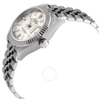 Stainless steel case with a stainless steel Rolex jubilee bracelet. Fixed fluted stainless steel bezel. Silver dial with luminous silver-tone hands and index hour markers. Minute markers around the outer rim. Dial Type: Analog. Luminescent hands and markers. Date display at the 3 o'clock position. Rolex calibre 2236 automatic movement, based upon Rolex 2235, containing 31 Jewels, bitting at 28800 vph, and has a power reserve of approximately 55 hours. Scratch resistant sapphire crystal. Screw down crown. Solid case back. Round case shape. Case size: 28 mm. Fold over clasp. Water resistant at 100 meters / 330 feet. Functions: date, hour, minute, second, chronometer. Lady Datejust 28 Series. Luxury watch style. Watch label: Swiss Made. Rolex Lady-Datejust Silver Dial Automatic Ladies Jubilee Watch 279174SSJ. INFORMATION Brand: Rolex Series: Lady Datejust Collection Name: Lady Datejust Gender: Womens Model: 279174SSJ Watch Label: Swiss Made Movement: Automatic Engine: Rolex Calibre 2236 Power Reserve: 55 hours CASE Case Size: 28 mm Case Color: Silver-Tone Case Material: Stainless Steel Case Shape: Round Case Back: Solid BAND Band Material: Stainless Steel Rolex Jubilee Band Type: Bracelet Band Color: Silver-tone Clasp: Fold Over DIAL Dial Color: Silver Type: Analog Crystal: Scratch Resistant Sapphire Hands: Luminous Silver-tone Dial Markers: Index Second Markers: Minute Markers around the outer rim Luminiscence: Hands and Markers Bezel: Fixed Fluted Bezel Material: Stainless Steel Crown: Screw Down FEATURES Water Resistance: 100 meters / 330 feet Calendar: Date display at the 3 o'clock position Functions: Date, Hour, Minute, Second, Chronometer Watch Features: Stainless Steel, Chronometer, Analog ADDITIONAL INFO Watch Style: Luxury Warranty: 2 Year Jomashop Warranty UPC Code: 842047146934 Jomashop Sku: RLX279174SSJ Item Variation: m279174-0005 Department: Watches Category: Watches