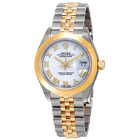 18kt yellow gold and stainless steel case with a 18kt yellow gold and stainless steel jubilee bracelet. Fixed, domed 18kt yellow gold bezel. White dial with gold-tone hands and Roman numeral hour markers. Dial Type: Analog. Date display at the 3 o'clock position. Rolex Calibre 2236 automatic movement with a 55-hour power reserve. Scratch resistant sapphire crystal. Screw down crown. Solid case back. Round case shape. Case size: 28 mm. Water resistant at 100 meters / 330 feet. Functions: date, hour, minute, second, chronometer. Luxury watch style. Watch label: Swiss Made. Rolex Lady-Datejust White Dial Automatic Ladies 18kt Yellow Gold and Steel Jubilee Watch 279163WRJ. INFORMATION Brand: Rolex Series: Lady Datejust Collection Name: Lady Datejust Gender: Womens Model: 279163WRJ Watch Label: Swiss Made Movement: Automatic Engine: Rolex Calibre 2236 Power Reserve: 55 hours CASE Case Size: 28 mm Case Material: 18kt Yellow Gold and Stainless Steel Case Shape: Round Case Back: Solid BAND Band Material: 18kt Yellow Gold and Stainless Steel Jubilee Band Type: Bracelet Band Color: Two-tone (Silver-tone and Gold-tone) Clasp: Crownclasp DIAL Dial Color: White Type: Analog Crystal: Scratch Resistant Sapphire Hands: Gold-tone Dial Markers: Roman Numeral Bezel: Fixed Domed Bezel Material: 18kt Yellow Gold Crown: Screw Down FEATURES Water Resistance: 100 meters / 330 feet Calendar: Date display at the 3 o'clock position Functions: Date, Hour, Minute, Second, Chronometer Watch Features: Stainless Steel, Gold, Chronometer, Analog ADDITIONAL INFO Watch Style: Luxury Warranty: 2 Year Jomashop Warranty UPC Code: 842047124970 Jomashop Sku: RLX279163WRJ Department: Watches Category: Watches
