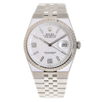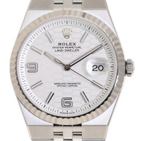 Silver-tone oystersteel case with a silver-tone oystersteel flat jubilee bracelet. Fixed silver-tone oystersteel bezel. Intense white dial with silver-tone hands and index-Arabic numeral hour markers. Minute markers around the outer rim. Dial Type: Analog. Luminescent chromalight. Date display at the 3 o'clock position. Rolex Calibre 7135 Automatic movement, based upon Rolex Calibre 7140, containing 39 Jewels, bitting at 36000 vph, and has a power reserve of approximately 66 hours. Scratch resistant sapphire crystal. Screw down crown. Transparent see through case back. Round case shape, case size: 40 mm. Fold over clasp. Water resistant at 100 meters / 330 feet. Functions: date, hour, minute, second, chronometer. Land Dweller Series. Dress watch style. Watch label: Swiss Made. Item Variations: 127334-0001. Rolex Land Dweller Automatic Chronometer Watch M127334-0001. GENERAL Box Type: Original Box CASE Case Diameter: 40 mm Case Material: Oystersteel Case Shape: Round Case Back: Transparent See Through BAND Band Material: Oystersteel Flat Jubilee Band Type: Bracelet Band Color: Silver-tone Clasp: Fold Over DIAL Dial Color: Intense White Type: Analog Crystal: Scratch Resistant Sapphire Hands: Silver-tone Dial Markers: Index-Arabic Numeral Second Markers: Minute Markers around the outer rim Luminiscence: Chromalight Bezel: Fixed Bezel Color: Silver-tone Bezel Material: Oystersteel Crown: Screw Down INFORMATION Brand: Rolex Series: Land Dweller Collection Name: Land Dweller Gender: Mens Model: M127334-0001 Watch Label: Swiss Made Movement: Automatic Engine: Rolex Calibre 7135 Power Reserve: 66 hours FEATURES Water Resistance: 100 meters / 330 feet Calendar: Date display at the 3 o'clock position Functions: Date, Hour, Minute, Second, Chronometer Watch Features: Chronometer, Analog ADDITIONAL INFO Watch Style: Dress Warranty: 2 Year Jomashop Warranty Jomashop Sku: RLX127334-0001 Item Variation: 127334-0001 Department: Watches