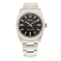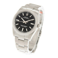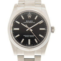 Stainless steel case with a stainless steel bracelet. Fixed stainless steel bezel. Black dial with silver-tone hands and index / small Roman numeral hour markers. Minute markers around the outer rim. Dial Type: Analog. Rolex calibre 2232 automatic movement, containing 31 Jewels, bitting at 28800 vph, and has a power reserve of approximately 55 hours. Scratch resistant sapphire crystal. Screw down crown. Solid case back. Round case shape. Case size: 34 mm. Oysterlock clasp. Water resistant at 100 meters / 330 feet. Functions: hour, minute, second, chronometer. Oyster Perpetual 34 Series. Luxury watch style. Watch label: Swiss Made. Item Variations: M124200-0002. Rolex Oyster Perpetual 34 Automatic Chronometer Black Dial Ladies Watch 124200BKSO. CASE Case Size: 34 Case Material: Stainless Steel Case Shape: Round Case Back: Solid BAND Band Material: Stainless Steel Band Type: Bracelet Band Color: Silver-tone Clasp: Oysterlock DIAL Dial Color: Black Type: Analog Crystal: Scratch Resistant Sapphire Hands: Silver-tone Dial Markers: Index / Small Roman Numeral Second Markers: Minute Markers around the outer rim Bezel: Fixed Bezel Color: Silver-tone Bezel Material: Stainless Steel Crown: Screw Down INFORMATION Brand: Rolex Series: Oyster Perpetual Collection Name: Oyster Perpetual Gender: Womens Model: 124200-0002 Watch Label: Swiss Made Movement: Automatic Engine: Rolex Calibre 2232 Power Reserve: 55 hours FEATURES Water Resistance: 100 meters / 330 feet Functions: Hour, Minute, Second, Chronometer Watch Features: Analog, Chronometer, Perpetual, Stainless Steel ADDITIONAL INFO Watch Style: Luxury Warranty: 2 Year Jomashop Warranty Jomashop Sku: RLX124200BKSO Item Variation: M124200-0002, 124200BKSO Department: Watches Category: Watches