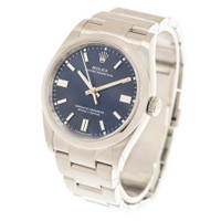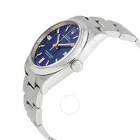 Stainless steel case with a stainless steel bracelet. Fixed stainless steel bezel. Blue dial with luminous silver-tone hands and index hour markers. Minute markers around the outer rim. Dial Type: Analog. Luminescent hands and markers. Rolex calibre 3230 automatic movement, containing 31 Jewels, bitting at 28800 vph, and has a power reserve of approximately 70 hours. Scratch resistant sapphire crystal. Screw down crown. Solid case back. Round case shape. Case size: 36 mm. Oysterlock clasp. Water resistant at 100 meters / 330 feet. Functions: hour, minute, second, chronometer. Oyster Perpetual 36 Series. Sport watch style. Watch label: Swiss Made. Item Variations: M126000-0003. Rolex Oyster Perpetual 36 Automatic Chronometer Blue Dial Watch 126000BLSO. CASE Case Size: 36 Case Material: Stainless Steel Case Shape: Round Case Back: Solid BAND Band Material: Stainless Steel Band Type: Bracelet Band Color: 1 Clasp: Oysterlock DIAL Dial Color: Blue Type: Analog Crystal: Scratch Resistant Sapphire Hands: Luminous Silver-tone Dial Markers: Index Second Markers: Minute Markers around the outer rim Luminiscence: Hands and Markers Bezel: Fixed Bezel Material: Stainless Steel Crown: Screw Down INFORMATION Brand: Rolex Series: Oyster Perpetual Collection Name: Oyster Perpetual Gender: Mens Model: M126000-0003 Watch Label: Swiss Made Movement: Automatic Engine: Rolex Calibre 3230 Power Reserve: 70 hours FEATURES Water Resistance: 100 meters / 330 feet Functions: Hour, Minute, Second, Chronometer Watch Features: Stainless Steel, Perpetual, Chronometer, Analog ADDITIONAL INFO Watch Style: Sport Warranty: 2 Year Jomashop Warranty Jomashop Sku: RLX126000BLSO Item Variation: 126000-0003, 126000BLSO Department: Watches Category: Watches