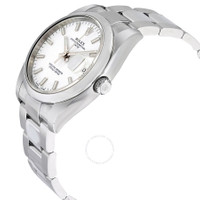 Stainless steel case with a stainless steel Rolex oyster bracelet. Fixed stainless steel bezel. White dial with silver-tone hands and index hour markers. Minute markers around the outer rim. Dial Type: Analog. Luminescent hands and dial markers. Date display at the 3 o'clock position. Rolex calibre 3135 automatic movement with a 48-hour power reserve. Scratch resistant sapphire crystal. Screw down crown. Solid case back. Case size: 34 mm. Round case shape. Oysterlock clasp. Water resistant at 100 meters / 330 feet. Functions: date, hour, minute, second. Luxury watch style. Watch label: Swiss Made. Rolex Oyster Perpetual Date 34 White Dial Stainless Steel Rolex Oyster Automatic Men's Watch 115200WSO. GENERAL Color: White CASE Case Size: 34 Case Color: Silver-Tone Case Material: Stainless Steel Case Shape: Round Case Back: Solid BAND Band Material: Stainless Steel Rolex Oyster Band Type: Bracelet Band Color: Silver-tone Clasp: Oysterlock DIAL Dial Color: White Type: Analog Crystal: Scratch Resistant Sapphire Hands: Silver-tone Dial Markers: Index Second Markers: Minute Markers around the outer rim Luminiscence: Hands and Dial Markers Bezel: Fixed Smooth Bezel Color: Silver-tone Bezel Material: Stainless Steel Crown: Screw Down INFORMATION Brand: Rolex Series: Oyster Perpetual Collection Name: Oyster Perpetual Gender: Mens Model: 115200WSO Watch Label: Swiss Made Movement: Automatic Engine: Rolex Calibre 3135 Power Reserve: 48 hours FEATURES Water Resistance: 100 meters / 330 feet Calendar: Date display at the 3 o'clock position Functions: Date, Hour, Minute, Second, Chronometer Watch Features: Stainless Steel, Perpetual, Chronometer, Analog ADDITIONAL INFO Watch Style: Luxury Warranty: 2 Year Jomashop Warranty UPC Code: 845960082679 Additional Info: Date displays at the 3 o'clock mark Jomashop Sku: RLX115200WSO Item Variation: 115200-72190 Department: Watches Category: Watches