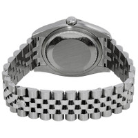 Stainless steel case with a stainless steel Rolex jubilee bracelet. Fixed 18kt white gold bezel set with diamonds. Black mother of pearl dial with silver-tone hands and diamond hour markers. Dial Type: Analog. Date display at the 3 o'clock position. Rolex calibre 3135 automatic movement with a 50-hour power reserve. Scratch resistant sapphire crystal. Screw down crown. Solid case back. Round case shape. Case size: 36 mm. Oysterlock clasp. Water resistant at 100 meters / 330 feet. Functions: date, hour, minute, second, chronometer. Luxury watch style. Watch label: Swiss Made. Rolex Oyster Perpetual Datejust 36 Black Mother of Pearl Dial Stainless Steel Jubilee Bracelet Automatic Men's Watch 116244BMDJ. GENERAL Color: Black / Gold / Mother of pearl / White CASE Case Size: 36 Case Color: Silver-Tone Case Material: Stainless Steel Case Shape: Round Case Back: Solid BAND Band Material: Stainless Steel Rolex Jubilee Band Type: Bracelet Band Color: Silver-tone Clasp: Oysterlock DIAL Dial Color: Black Mother of Pearl Type: Analog Crystal: Scratch Resistant Sapphire Hands: Silver-tone Dial Markers: Diamond Bezel: Fixed Bezel Color: 18kt White Gold Bezel Material: Diamond Set Crown: Screw Down INFORMATION Brand: Rolex Series: Oyster Perpetual Collection Name: Oyster Perpetual Gender: Mens Model: 116244BMDJ Watch Label: Swiss Made Movement: Automatic Engine: Rolex Calibre 3135 Power Reserve: 50 hours FEATURES Water Resistance: 100 meters / 330 feet Calendar: Date display at the 3 o'clock position Functions: Date, Hour, Minute, Second, Chronometer Watch Features: Analog, Chronometer, Perpetual, Gold, Stainless Steel, Diamond ADDITIONAL INFO Watch Style: Luxury Warranty: 2 Year Jomashop Warranty UPC Code: 845960075763 Jomashop Sku: RLX116244BMDJ Department: Watches Category: Watches