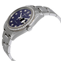 Stainless steel case with a stainless steel Rolex oyster bracelet. Fixed 18kt white gold bezel set with diamonds. Blue jubilee dial with silver-tone hands and diamond hour markers. Dial Type: Analog. Date display at the 3 o'clock position. Rolex calibre 3135 automatic movement with a 50-hour power reserve. Scratch resistant sapphire crystal. Screw down crown. Solid case back. Round case shape. Case size: 36 mm. Oysterlock clasp. Water resistant at 100 meters / 330 feet. Functions: date, hour, minute, second, chronometer. Luxury watch style. Watch label: Swiss Made. Rolex Oyster Perpetual Datejust 36 Blue Dial Stainless Steel Bracelet Automatic Ladies Watch 116244BLJDO. GENERAL Color: Blue INFORMATION Brand: Rolex Series: Oyster Perpetual Collection Name: Oyster Perpetual Gender: Womens Model: 116244BLJDO Watch Label: Swiss Made Movement: Automatic Engine: Rolex Calibre 3135 Power Reserve: 50 hours CASE Case Size: 36 mm Case Color: Silver-Tone Case Material: Stainless Steel Case Shape: Round Case Back: Solid BAND Band Material: Stainless Steel Rolex Oyster Band Type: Bracelet Band Color: Silver-tone Clasp: Oysterlock DIAL Dial Color: Blue Jubilee Type: Analog Crystal: Scratch Resistant Sapphire Hands: Silver-tone Dial Markers: Diamond Bezel: Fixed Bezel Color: 18kt White Gold Bezel Material: Diamond Set Crown: Screw Down FEATURES Water Resistance: 100 meters / 330 feet Calendar: Date display at the 3 o'clock position Functions: Date, Hour, Minute, Second, Chronometer Watch Features: Analog, Chronometer, Perpetual, Gold, Stainless Steel, Diamond ADDITIONAL INFO Watch Style: Luxury Warranty: 2 Year Jomashop Warranty UPC Code: 845960075725 Jomashop Sku: RLX116244BLJDO Department: Watches Category: Watches