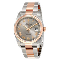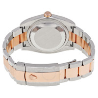 Stainless steel case with a stainless steel Rolex oyster bracelet with 18kt everose gold center links. Fluted 18kt everose gold bezel. Rhodium dial with rose gold-tone hands and Roman numeral hour markers. Minute markers around the outer rim. Dial Type: Analog. Date display at the 3 o'clock position. Rolex calibre 3135 automatic movement with a 48-hour power reserve. Scratch resistant sapphire crystal. Screw down crown. Solid case back. Case size: 36 mm. Round case shape. Folding oyster clasp. Water resistant at 100 meters / 330 feet. Functions: date, hour, minute, second. Luxury watch style. Watch label: Swiss Made. Rolex Oyster Perpetual Datejust Rhodium Dial Automatic Ladies Stainless Steel and 18 Carat Everose Gold Watch 116231RRO. INFORMATION Brand: Rolex Series: Oyster Perpetual Collection Name: Oyster Perpetual Gender: Womens Model: 116231RRO Watch Label: Swiss Made Movement: Automatic Engine: Rolex Calibre 3135 Power Reserve: 48 hours CASE Case Size: 36 mm Case Color: Silver-Tone Case Material: Stainless Steel Case Shape: Round Case Back: Solid BAND Band Material: Stainless Steel and 18kt Everose Gold Oyster Band Type: Bracelet Band Color: Silver-tone Clasp: Folding Oyster DIAL Dial Color: Rhodium Type: Analog Crystal: Scratch Resistant Sapphire Hands: Rose Gold-tone Dial Markers: Roman Numeral Second Markers: Minute Markers around the outer rim Bezel: Fixed Fluted Bezel Material: 18kt Everose Gold Crown: Screw Down FEATURES Water Resistance: 100 meters / 330 feet Calendar: Date display at the 3 o'clock position Functions: Date, Hour, Minute, Second, Chronometer Watch Features: Stainless Steel, Gold, Perpetual, Chronometer, Analog ADDITIONAL INFO Watch Style: Luxury Warranty: 2 Year Jomashop Warranty UPC Code: 842047107799 Jomashop Sku: RLX116231RRO Item Variation: 116231-72601 Department: Watches Category: Watches