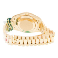 18kt yellow gold case with a 18kt yellow gold President bracelet. Fixed 18kt yellow gold bezel set with diamonds. Champagne dial with yellow gold-tone hands and baguette diamond hour markers. Minute markers around the outer rim. Dial Type: Analog. Date display at the 3 o'clock position. Day of the week display centered on the 12 o'clock position. Rolex calibre 3255 automatic movement with a 70-hour power reserve. Scratch resistant sapphire crystal. Screw down crown. Solid case back. Round case shape. Case size: 40 mm. Concealed crown clasp. Water resistant at 100 meters / 330 feet. Functions: date, day, hour, minute, second, chronometer. Luxury watch style. Watch label: Swiss Made. Rolex Oyster Perpetual Day-Date Champagne Diamond Dial 18K Yellow Gold Men's Watch 228348CDP. CASE Case Size: 40 Case Material: 18kt Yellow Gold Case Shape: Round Case Back: Solid BAND Band Material: 18kt Yellow Gold President Band Type: Bracelet Clasp: Concealed Crown DIAL Dial Color: Champagne Type: Analog Crystal: Scratch Resistant Sapphire Hands: Yellow Gold-tone Dial Markers: Baguette Diamond Second Markers: Minute Markers around the outer rim Bezel: Fixed Bezel Color: 18kt Yellow Gold Bezel Material: Diamond Set Crown: Screw Down INFORMATION Brand: Rolex Series: Day-Date 40 Collection Name: Day-Date 40 Gender: Mens Model: M228348RBR-0002 Watch Label: Swiss Made Movement: Automatic Engine: Rolex Calibre 3255 Power Reserve: 70 hours FEATURES Water Resistance: 100 meters / 330 feet Calendar: Date display at the 3 o'clock position. Day of the Week display centered on the 12 o'clock position Functions: Date, Day, Hour, Minute, Second, Chronometer Watch Features: Diamond, Gold, Perpetual, Chronometer, Analog ADDITIONAL INFO Watch Style: Luxury Warranty: 2 Year Jomashop Warranty Jomashop Sku: RLX228348CDP Item Variation: 228348RBR-0002, 228348CDP Department: Watches Category: Watches