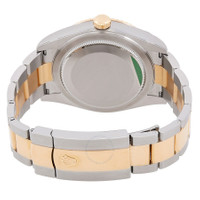 Stainless steel case with a two-tone (silver-tone and yellow gold-tone) stainless steel and 18kt yellow gold oyster bracelet. Bi-directional rotating ring command 18kt yellow gold bezel. Champagne dial with gold-tone hands and index hour markers. Minute markers around the outer rim. Dial Type: Analog. Luminescent hands and markers. Date display at the 3 o'clock position. One subdial displaying: 24 hour. Rolex Calibre 9002 Automatic movement, based upon Rolex Calibre 9001, containing 40 Jewels, bitting at 28800 vph, and has a power reserve of approximately 72 hours. Scratch resistant sapphire crystal. Screw down crown. Solid case back. Round case shape, case size: 42 mm. Oyster clasp. Water resistant at 100 meters / 330 feet. Functions: annual calendar, month, date, GMT, second time zone, hour, minute, second, chronometer. Sky Dweller Series. Luxury watch style. Watch label: Swiss Made. Item Variations: M336933-0001. Rolex Sky Dweller GMT Automatic Chronometer Champagne Dial Men's Watch 336933-0001. GENERAL Box Type: Original Box CASE Case Size: 42 Case Material: Stainless Steel Case Shape: Round Case Back: Solid BAND Band Material: Stainless Steel and 18kt Yellow Gold Oyster Band Type: Bracelet Band Color: Two-tone (Silver-tone and Yellow Gold-tone) Clasp: Oysterclasp DIAL Dial Color: Champagne Type: Analog Crystal: Scratch Resistant Sapphire Hands: Gold-tone Dial Markers: Index Second Markers: Minute Markers around the outer rim Sub Dials: One - 24 Hour Luminiscence: Hands and Markers Bezel: Bi-directional Rotating Ring Command Bezel Color: Yellow Gold-tone Bezel Material: 18kt Yellow Gold Crown: Screw Down INFORMATION Brand: Rolex Series: Sky-Dweller Collection Name: Sky Dweller Gender: Mens Model: 336933-0001 Watch Label: Swiss Made Movement: Automatic Engine: Rolex Calibre 9002 Power Reserve: 72 hours FEATURES Water Resistance: 100 meters / 330 feet Calendar: Date display at the 3 o'clock position Functions: Annual Calendar, Month, Date, GMT, Second Time Zone, Hour, Minute, Second, Chronometer Watch Features: Month, Analog, GMT, Annual Calendar, Chronometer, Gold, Stainless Steel, Time Zone ADDITIONAL INFO Watch Style: Luxury Warranty: 2 Year Jomashop Warranty Jomashop Sku: RLX336933-0001 Item Variation: M336933-0001 Department: Watches Category: Watches