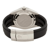 18kt white gold case with a black rubber strap. Bi-directional rotating ring command 18kt white gold bezel. White dial with silver-tone hands and index hour markers. Minute markers around the outer rim. Dial Type: Analog. Luminescent hands and markers. Date display at the 3 o'clock position. One subdial displaying: 24 hour. Rolex Calibre 9002 Automatic movement, based upon Rolex Calibre 9001, containing 40 Jewels, bitting at 28800 vph, and has a power reserve of approximately 72 hours. Scratch resistant sapphire crystal. Screw down crown. Solid case back. Round case shape, case size: 42 mm. Fold over clasp with a safety release. Water resistant at 100 meters / 330 feet. Functions: annual calendar, month, date, GMT, second time zone, hour, minute, second, chronometer. Additional Info: original box, international warranty card, manual (complete accessories). Sky-dweller Series. Luxury watch style. Watch label: Swiss Made. Rolex Sky-Dweller GMT Automatic Chronometer White Dial Men's Watch INFORMATION Brand: Rolex Series: Sky Dweller Collection Name: Sky Dweller Gender: Mens Model: 336239-0003 Watch Label: Swiss Made Movement: Automatic Engine: Rolex Calibre 9002 Power Reserve: 72 hours CASE Case Size: 42 mm Case Material: 18kt White Gold Case Shape: Round Case Back: Solid BAND Band Material: Rubber Band Type: Strap Band Color: Black Clasp: Fold Over with Safety Release DIAL Dial Color: White Type: Analog Crystal: Scratch Resistant Sapphire Hands: Silver-tone Dial Markers: Index Second Markers: Minute Markers around the outer rim Sub Dials: One - 24 Hour Luminiscence: Hands and Markers Bezel: Bi-directional Rotating Ring Command Bezel Material: 18kt White Gold Crown: Screw Down FEATURES Water Resistance: 100 meters / 330 feet Calendar: Date display at the 3 o'clock position Functions: Annual Calendar, Month, Date, GMT, Second Time Zone, Hour, Minute, Second, Chronometer Watch Features: Analog, GMT, Annual Calendar, Chronometer, Month, Gold, Rubber, Time Zone ADDITIONAL INFO Watch Style: Luxury Warranty: 2 Year Jomashop Warranty Additional Info: Original Box, International Warranty Card, Manual (Complete Accessories) Jomashop Sku: RLX336239WSR Department: Watches Category: Watches