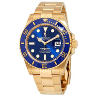 18kt yellow gold case with a 18kt yellow gold Rolex oyster bracelet. Uni-directional rotating 18kt yellow gold bezel with a cerachrom ring. Blue dial with yellow gold hands and dot hour markers. Minute markers around the outer rim. Dial Type: Analog. Luminescent hands and dial markers. Date display at the 3 o'clock position. Rolex clibre 3235 atomatic movement, based upon Rolex 3035, containing 31 Jewels, bitting at 28800 vph, and has a power reserve of approximately 70 hours. Scratch resistant sapphire crystal. Screw down crown. Solid case back. Round case shape. Case size: 41 mm. Oysterlock clasp. Water resistant at 300 meters / 1000 feet. Functions: date, hour, minute, second, chronometer. Submariner Series. Dive watch style. Watch label: Swiss Made. Item Variations: M126618LB-0002. Rolex Submariner Blue Dial 18K Yellow Gold Oyster Bracelet Automatic Men's Watch 126618LBBLSO. CASE Case Size: 41 Case Material: 18kt Yellow Gold Case Shape: Round Case Back: Solid BAND Band Material: 18kt Yellow Gold Rolex Oyster Band Type: Bracelet Clasp: Oysterlock DIAL Dial Color: Blue Type: Analog Crystal: Scratch Resistant Sapphire Hands: Yellow Gold Dial Markers: Dot Second Markers: Minute Markers around the outer rim Luminiscence: Hands and Dial Markers Bezel: Uni-directional Rotating Bezel Material: 18kt Yellow Gold with a Blue Cerachrom Ring Crown: Screw Down INFORMATION Brand: Rolex Series: Submariner Collection Name: Submariner Gender: Mens Model: M126618LB-0002 Watch Label: Swiss Made Movement: Automatic Engine: Rolex Calibre 3235 Power Reserve: 70 hours FEATURES Water Resistance: 300 meters / 1000 feet Calendar: Date display at the 3 o'clock position Functions: Date, Hour, Minute, Second, Chronometer Watch Features: Gold, Chronometer, Analog ADDITIONAL INFO Watch Style: Dive Warranty: 2 Year Jomashop Warranty Jomashop Sku: RLX126618LBBLSO Item Variation: 126618LB-0002, 126618LB Department: Watches Category: Watches