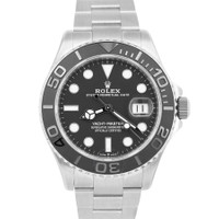 Grey titanium case with a grey titanium oyster bracelet. Bi-directional rotating black matt black cerachrom insert in ceramic bezel. Intense black dial with silver-tone hands and dots hour markers. Minute markers around the outer rim. Dial Type: Analog. Luminescent hands and markers. Date display at the 3 o'clock position. Rolex Calibre 3235 Automatic movement, based upon Rolex 3035, containing 31 Jewels, bitting at 28800 vph, and has a power reserve of approximately 70 hours. Scratch resistant sapphire crystal. Screw down crown. Solid case back. Round case shape, case size: 42 mm. Oysterlock folding safety clasp. Water resistant at 100 meters / 330 feet. Functions: date, hour, minute, second, chronometer. Yacht Master Series. Luxury watch style. Watch label: Swiss Made. Item Variations: M226627-0001. Rolex Yacht Master Automatic Chronometer Men's Watch 226627-0001. CASE Case Size: 42 Case Material: Titanium Case Shape: Round Case Back: Solid BAND Band Material: Titanium Oyster Band Type: Bracelet Band Color: Grey Clasp: Oysterlock Folding Safety Clasp DIAL Dial Color: Intense Black Type: Analog Crystal: Scratch Resistant Sapphire Hands: Silver-tone Dial Markers: Dots Second Markers: Minute Markers around the outer rim Luminiscence: Hands and Markers Bezel: Bi-directional Rotating Bezel Color: Black Bezel Material: Matt Black Cerachrom Insert In Ceramic Crown: Screw Down INFORMATION Brand: Rolex Series: Yacht Master Collection Name: Yacht Master Gender: Mens Model: 226627-0001 Watch Label: Swiss Made Movement: Automatic Engine: Rolex Calibre 3235 Power Reserve: 70 hours FEATURES Water Resistance: 100 meters / 330 feet Calendar: Date display at the 3 o'clock position Functions: Date, Hour, Minute, Second, Chronometer Watch Features: Titanium, Ceramic, Chronometer, Analog ADDITIONAL INFO Watch Style: Luxury Warranty: 2 Year Jomashop Warranty Jomashop Sku: RLX226627-0001 Item Variation: M226627-0001 Department: Watches Category: Watches